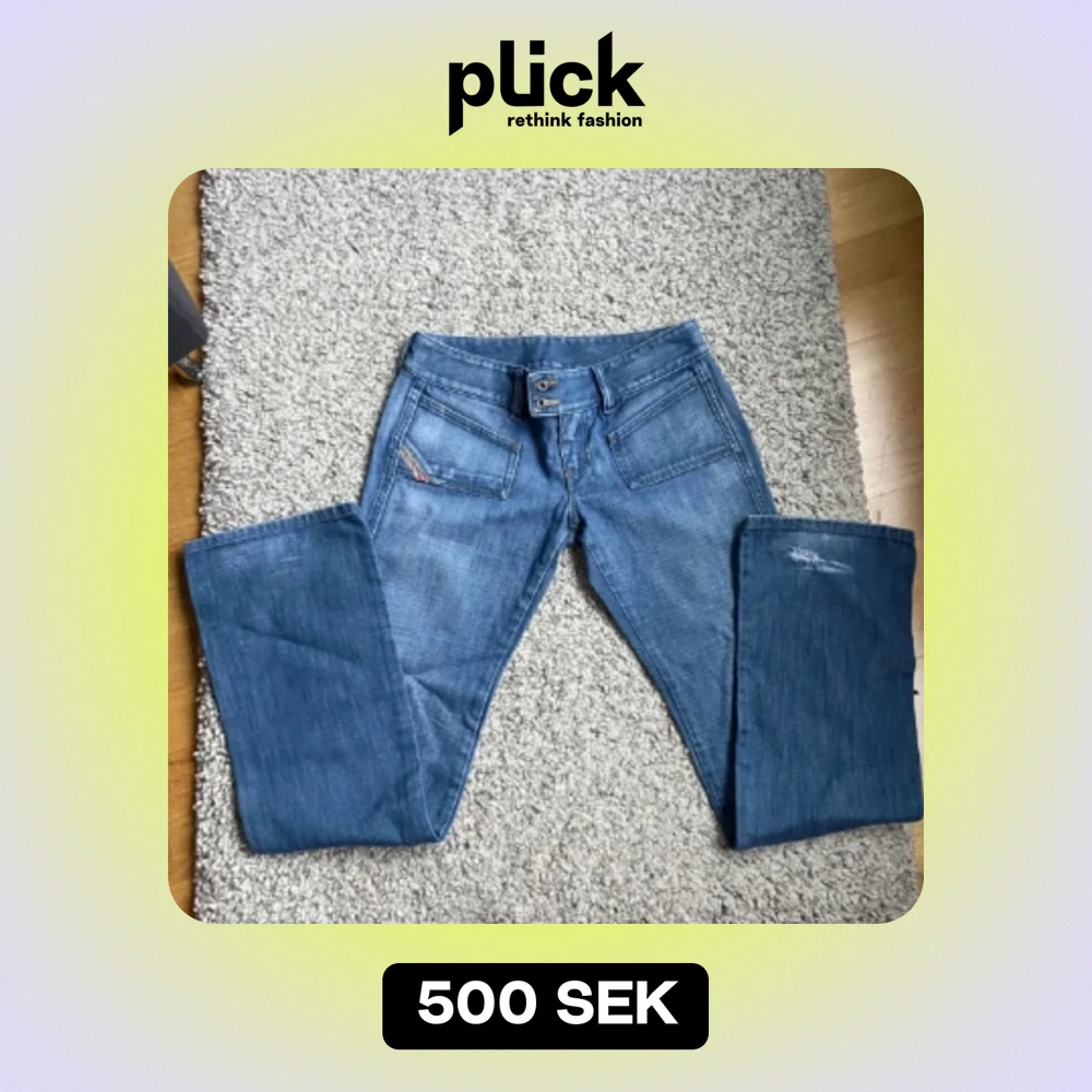 Superfina jeans från diesel, innerbenslängden 37 ca och innerbenslängden 82 cm. Passade inyr på mig så säljer vidare, få slitningar syns på bild. Inte mina bilder!! Lågmidjade och bootcuts