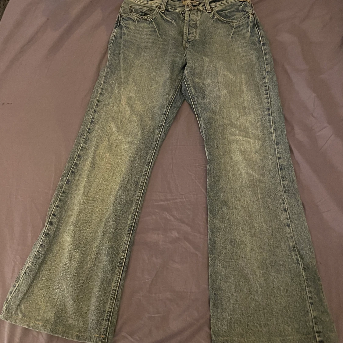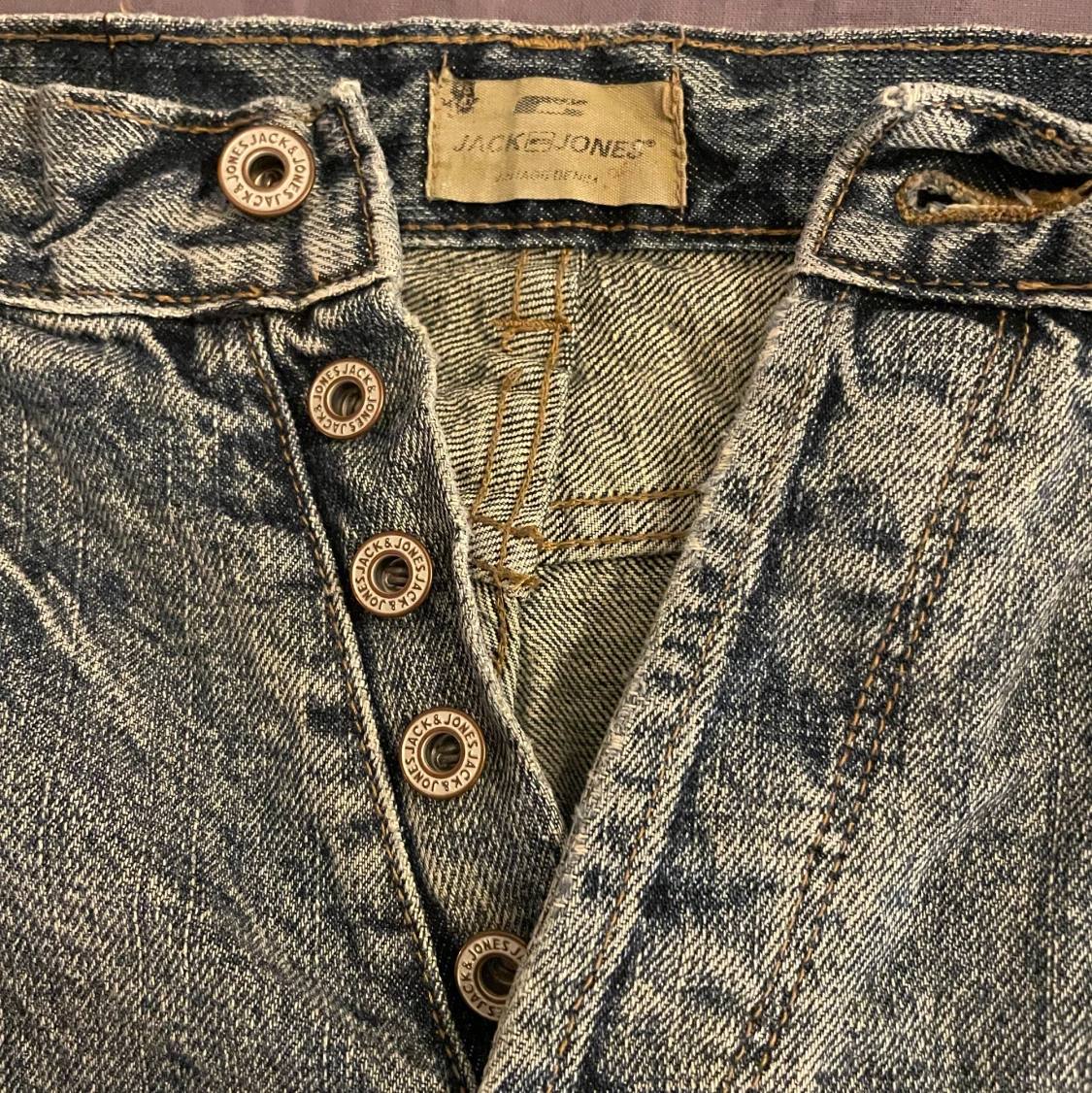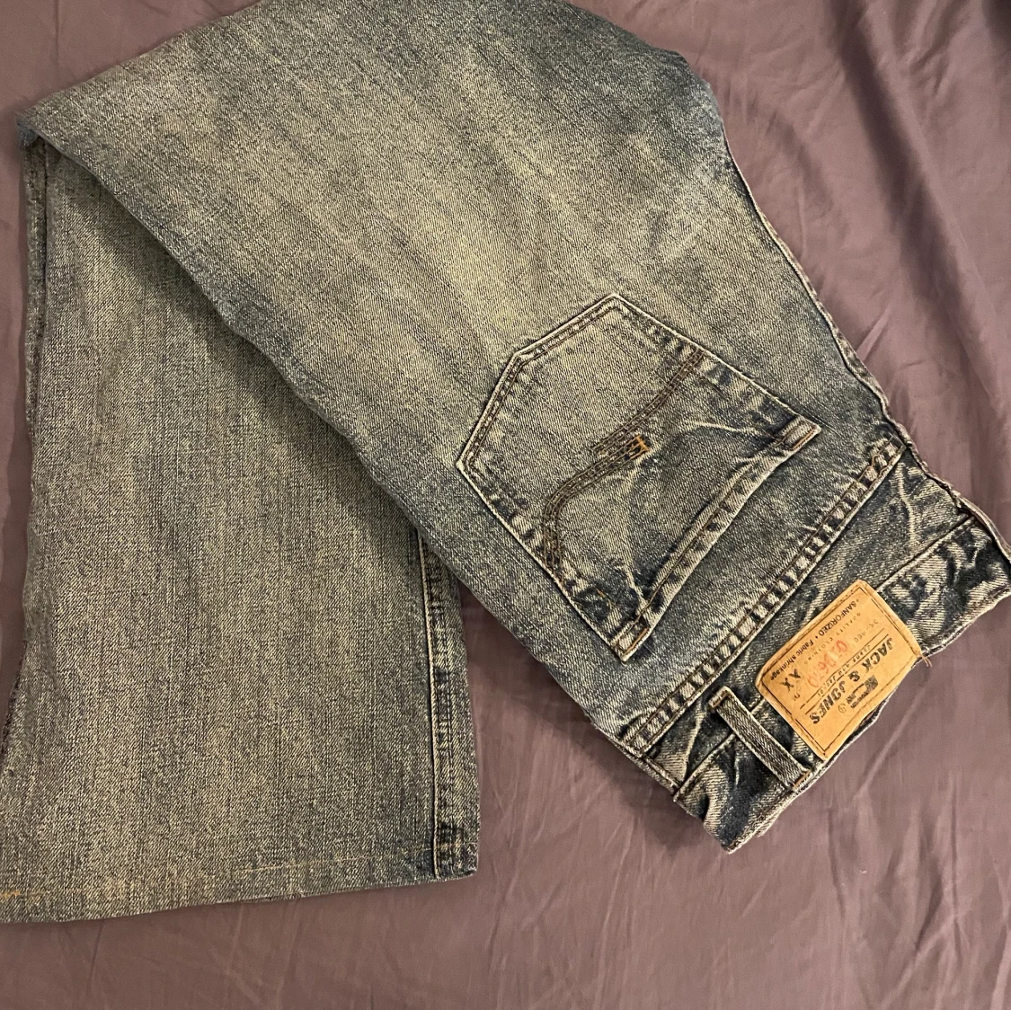 Ett par vintage Jack&jones jeans i stilen Mooty jeans, mer åt lågmidjade hållet, raka ben och storlek 32/”32. Midjan är 41 cm (ej runt om utan framsidan) och innerbenslängden är 76 cm 💛