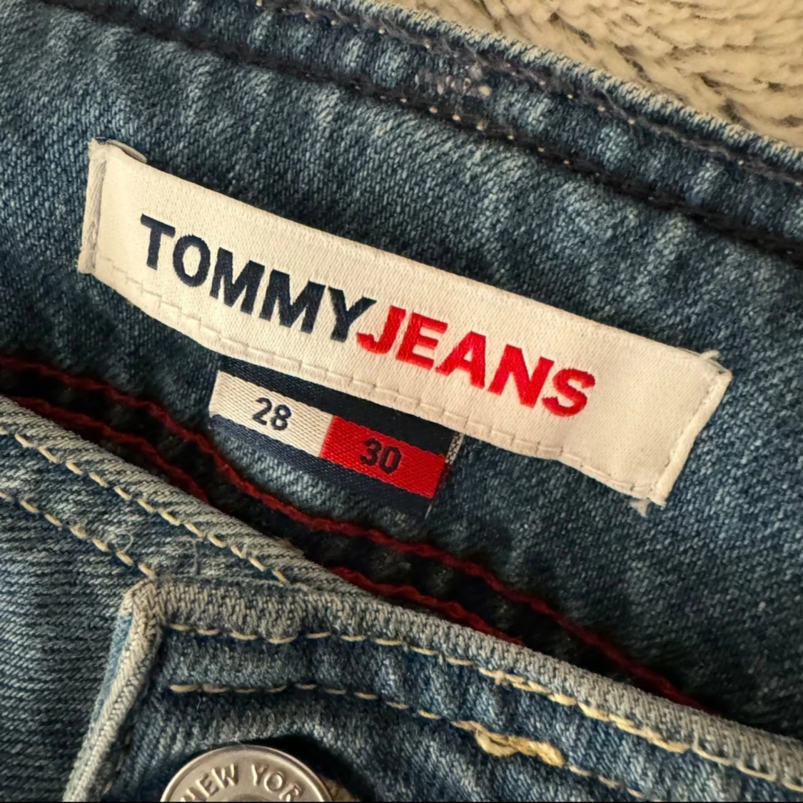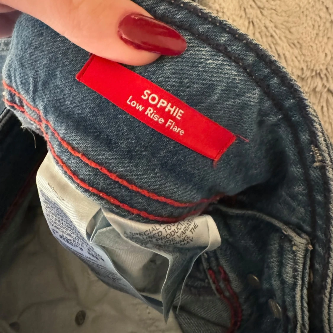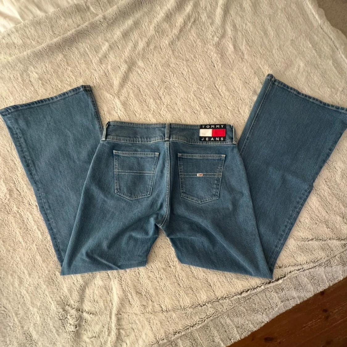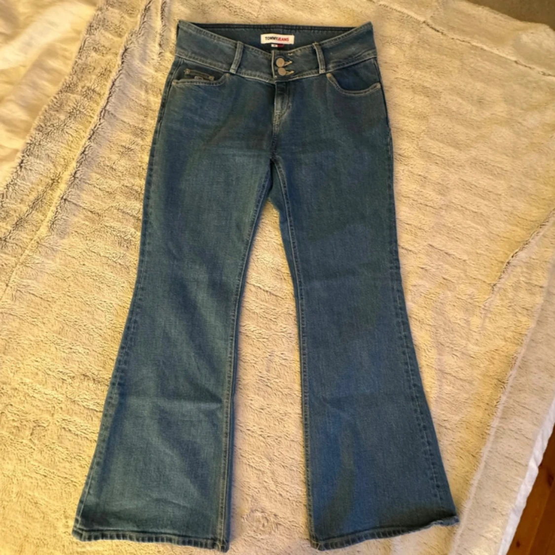Blå lågmidjade Tommy Hilfiger jeans i modellen ”sophie low rise flare” Strl 28/30 och aldrig till användning!! (nypris 1300:-) priset kan diskuteras