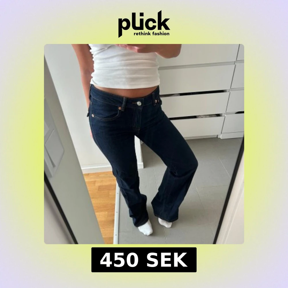 Jeans från Lager157 i 90s boot i mörkblått, är 160 cm lång <3