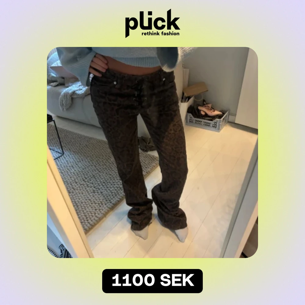 Jeans med leopard print och snörning i mitten så fin detalj 🐆köpta vintage i Paris för 1500kr