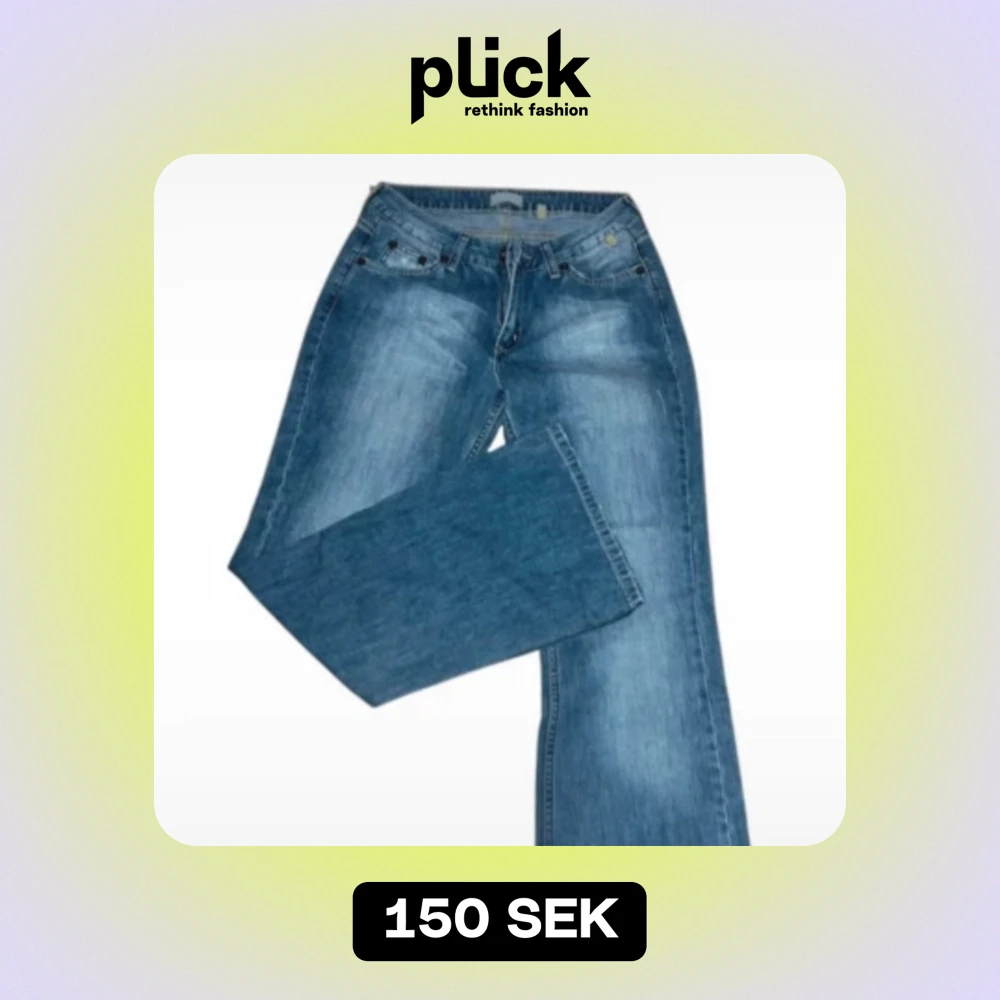 Säljer ett par jättesnygga blå lågmidjade jeans som är köpta second hand, prislapp kvar. Storlek M men skulle säga att de är mer som en S. Säljer då de inte passade mig. Mått: Midjemått 35/36 cm Grenhöjd 6,5cm Innerbenslängd 76cm. Skriv vid frågor!🥰