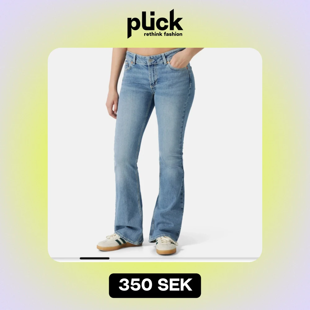 Säljer dessa ljusblå lågmidjade jeansen med detaljer på bakfickorna, från Junkyard. Storlek S💕