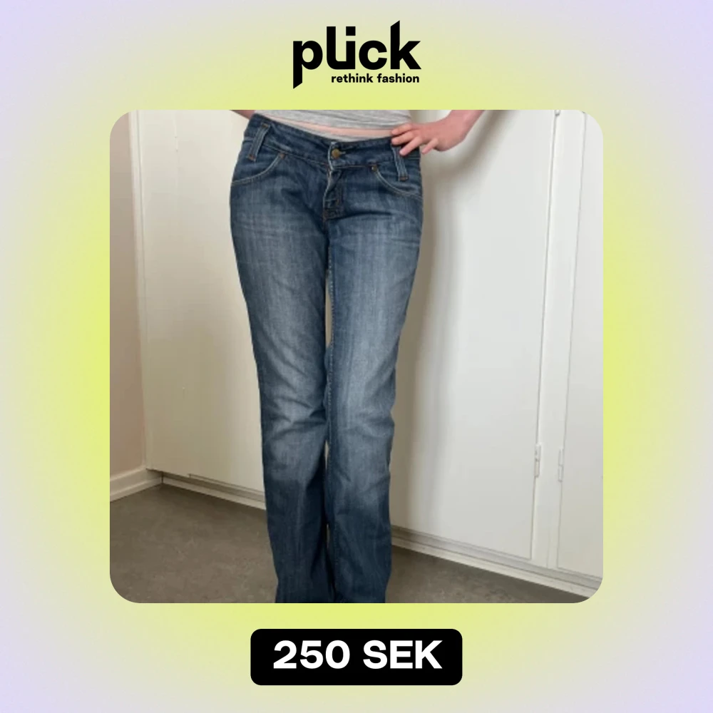 Lågmidjade, flared Lee jeans, storlek W29 L33. Slitningar längst ner på benen. Köpte dom på Plick för ca 700 kr. Dom är tyvärr lite för stora på mig. Säljer dom för 125 kr.