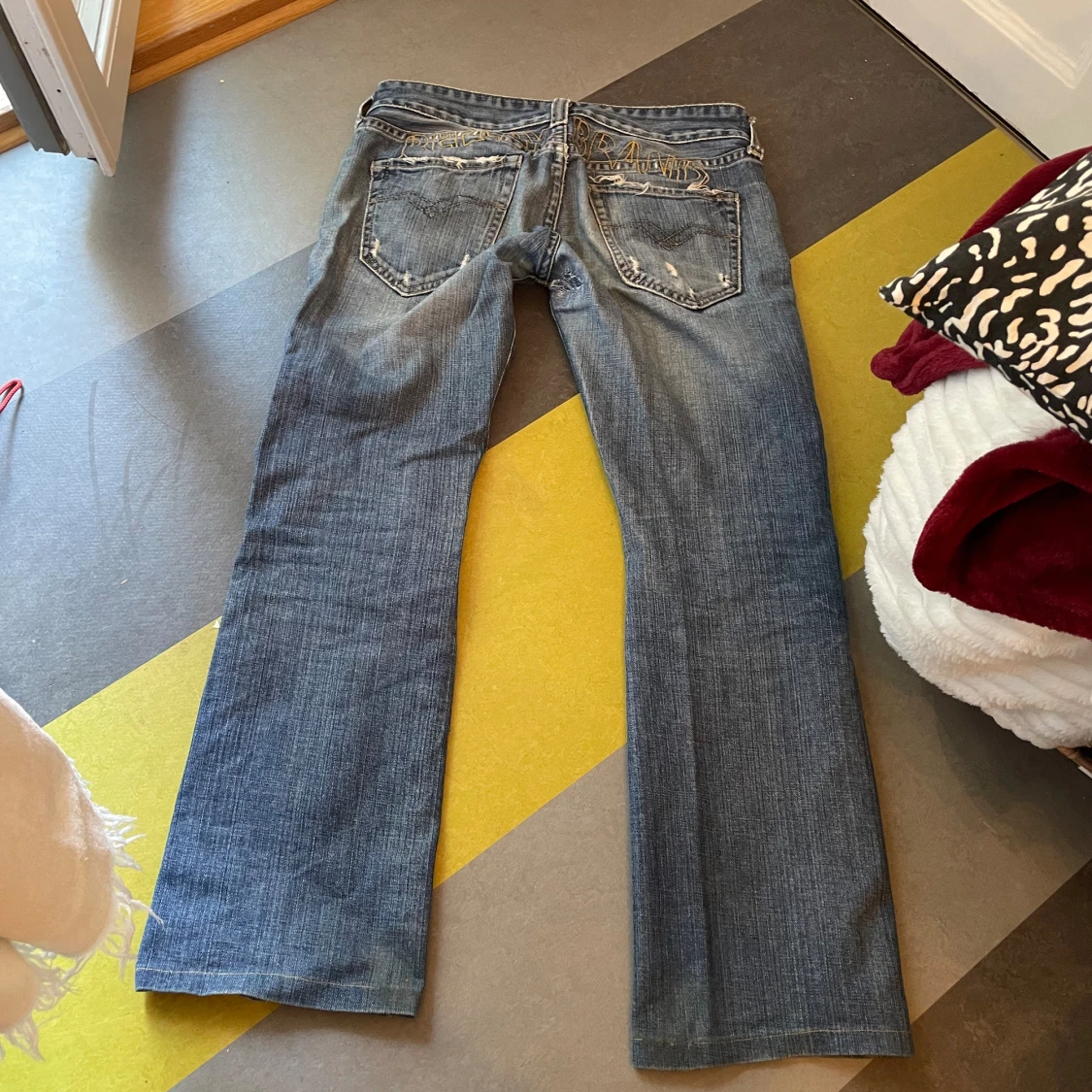 Lågmidjade och utsvängda jeans från märket Replay! Sista bilden är där jag har lagat byxorna då det var ett hål där förut! Bara att höra av dig om du har fler frågor såklart💓 Midjemått= 42 cm Innerbenslängd= 73 cm
