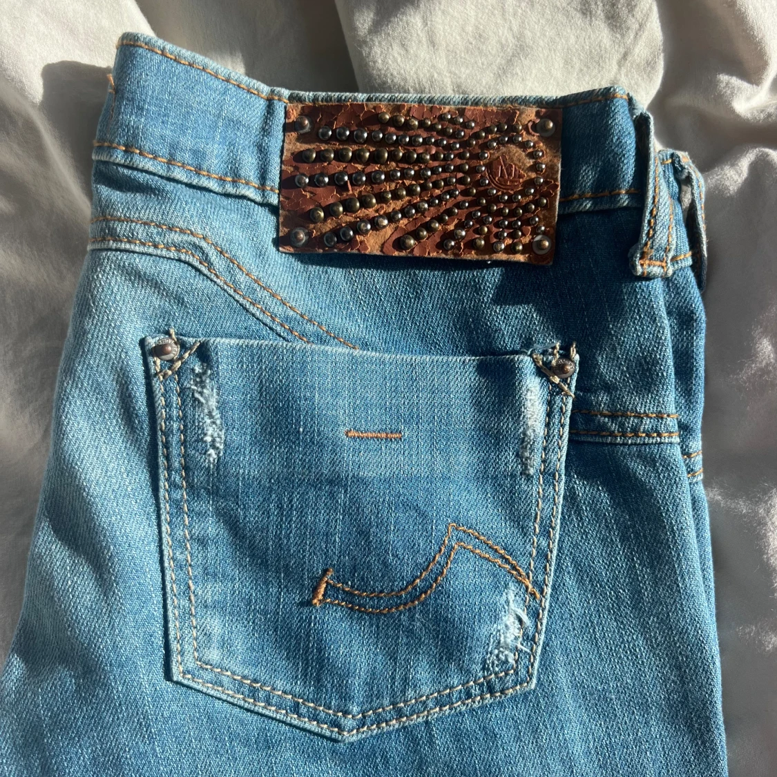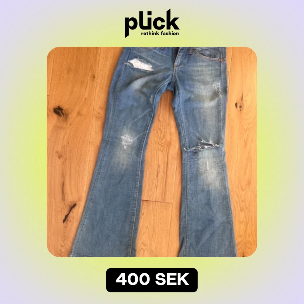 Säljer dessa as snygga jeans jag köpte på plick som tyvärr inte passade. Jeansen är bootcut och har lite hål som design! Skriv jättegärna om du undrar ngt annars är det bara att klicka på köp nu!💓💓