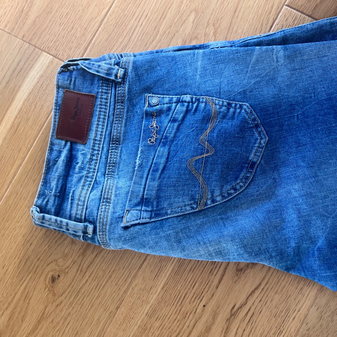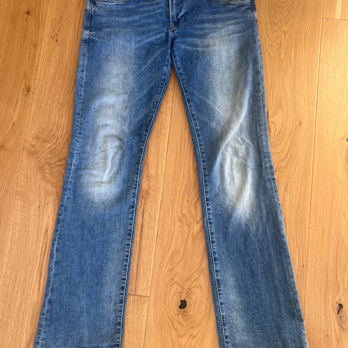 Säljer dessa super fina lågmidjade jeans som ej kommer till användning längre. Midjemått rakt över är 38 cm och innerbenslängden är 77 cm jag är 164 som referens. Skriv om du undrar ngt annars klicka bara köp nu!💓