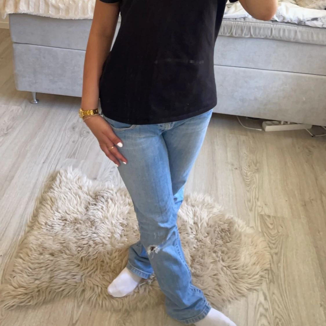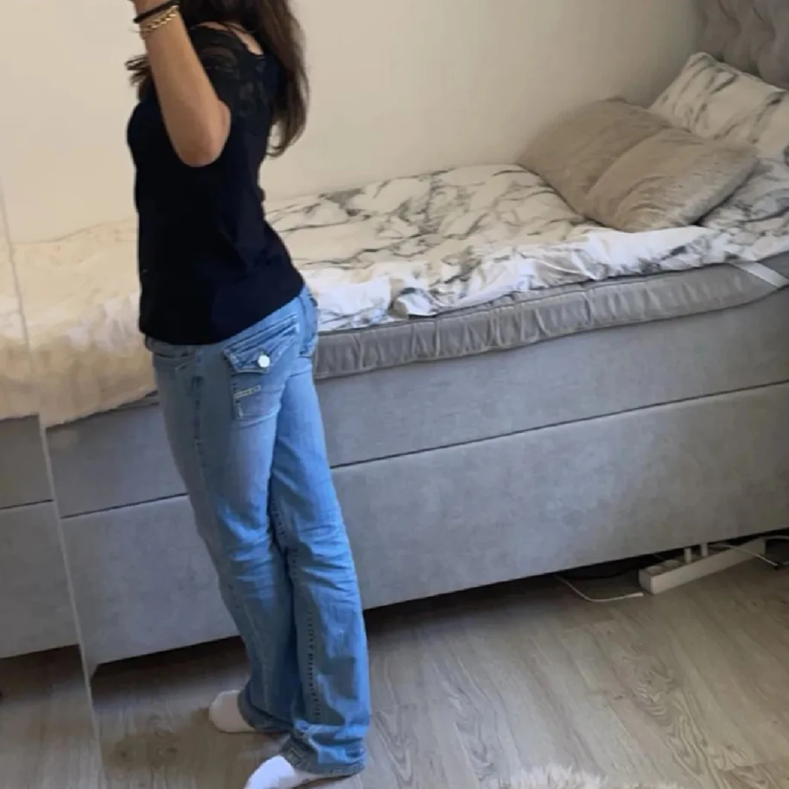 Säljer fina lågmidjade roxy jeans. De är som en strl S.💗 jag är 160cm.