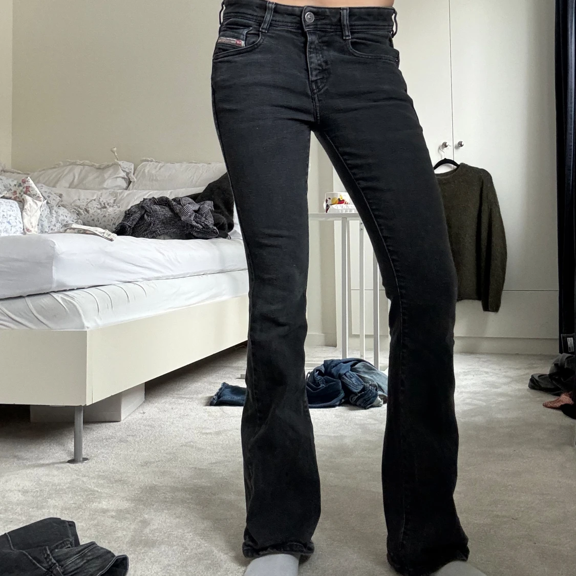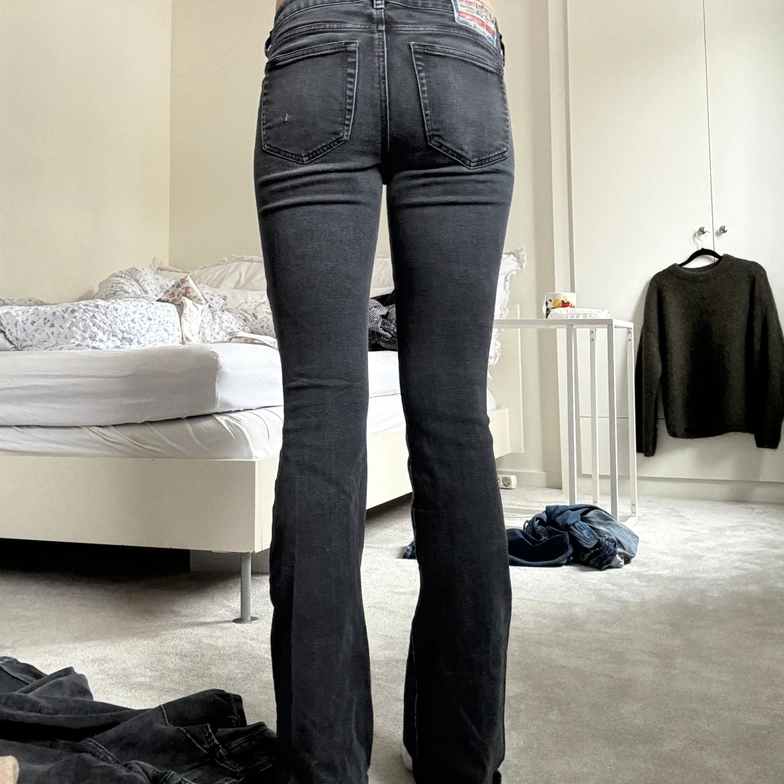 Lågmidjade jeans från diesel i sjukt snygg tvätt och passform. Jätte bra skick nypris ligger på ca 1500 kr. Jag är 165 cm