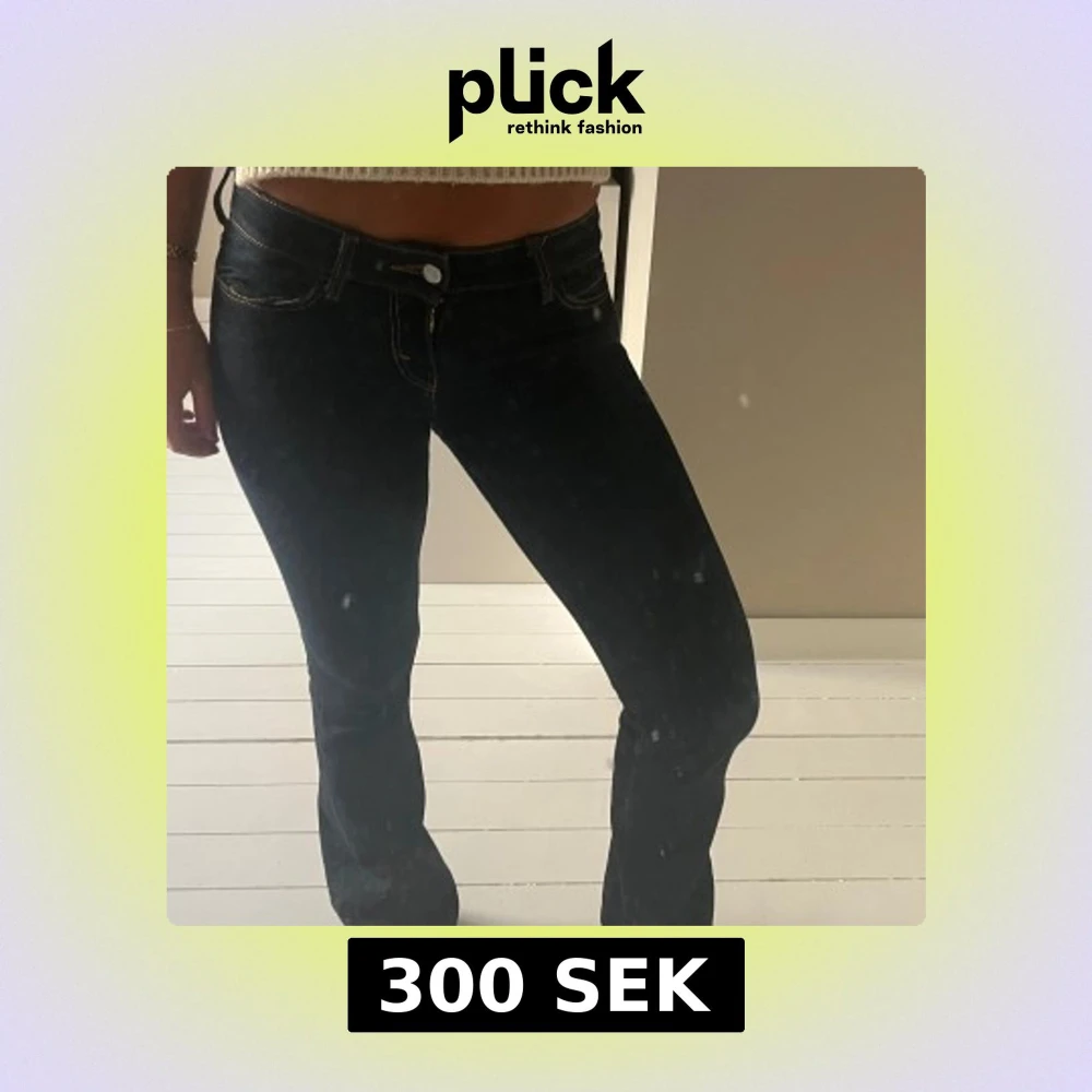 Snygga mörkblå bootcut jeans med kontrastsömmar och klassisk femficksdesign. Jeansen har låg midja och raka ben med lätt utsvängning nedtill. Materialet är jeans med stretch för skön passform. Perfekta för dig som gillar en tidlös och cool look.
