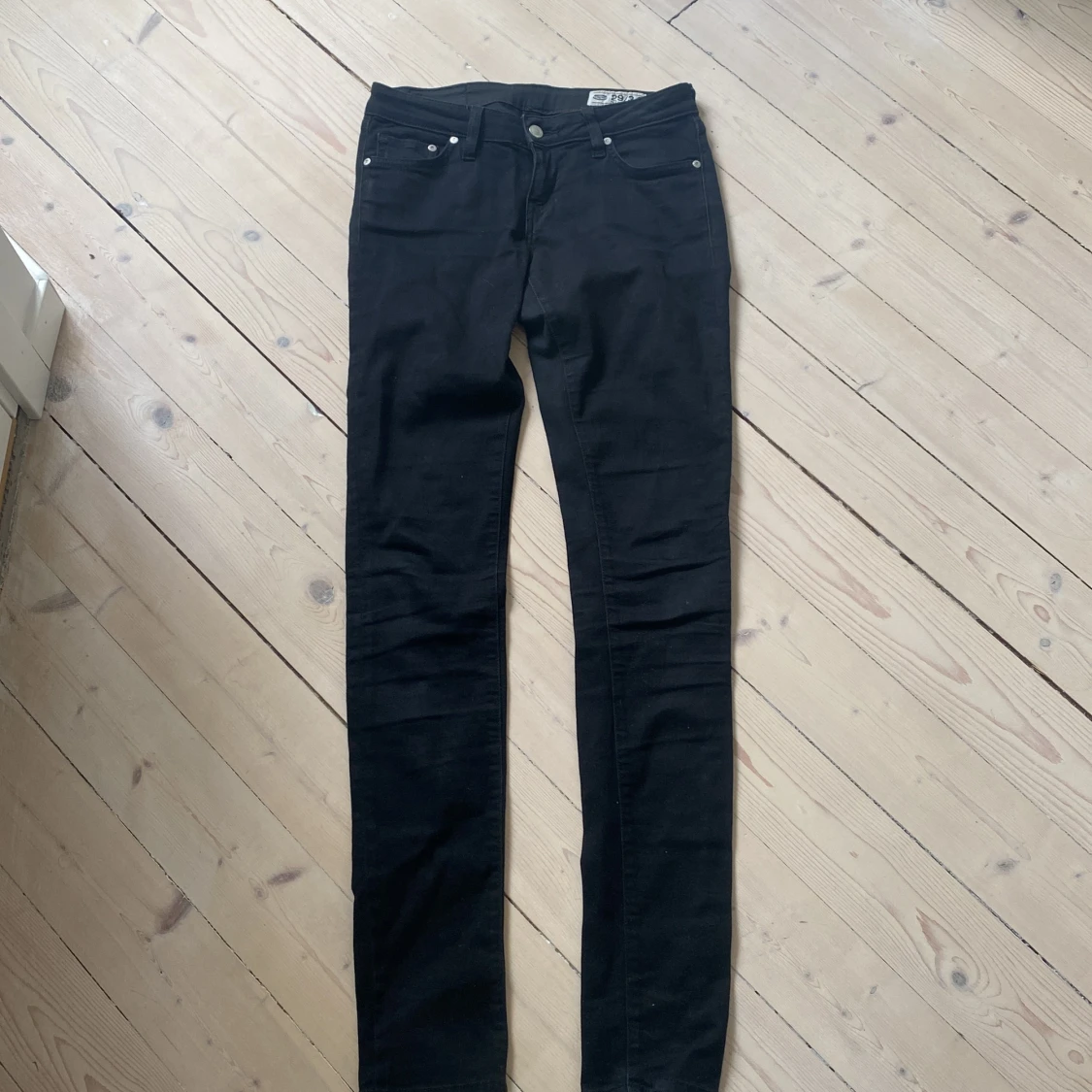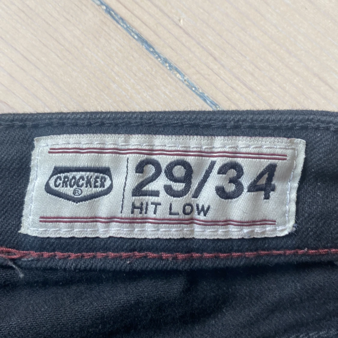 Svarta lågmidajde jeans från Crocker. Pris kan diskuteras.