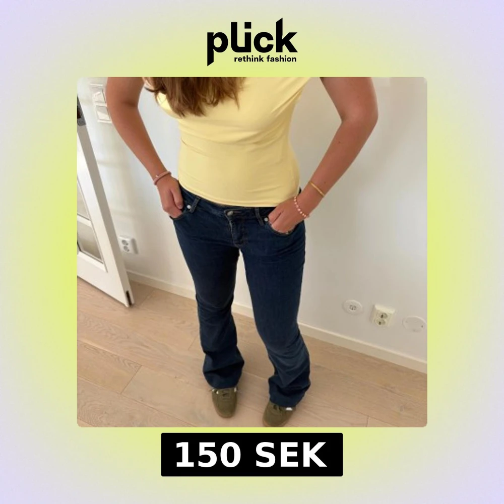 Mörkblåa jeans från Mango i en flared modell. Storlek 38 men de är väldigt stretchiga så passar även 40! För referens är jag 1,73 cm lång🌟 Mycket fint skick! Innerbenslängd 82 cm, midjemått 41 cm