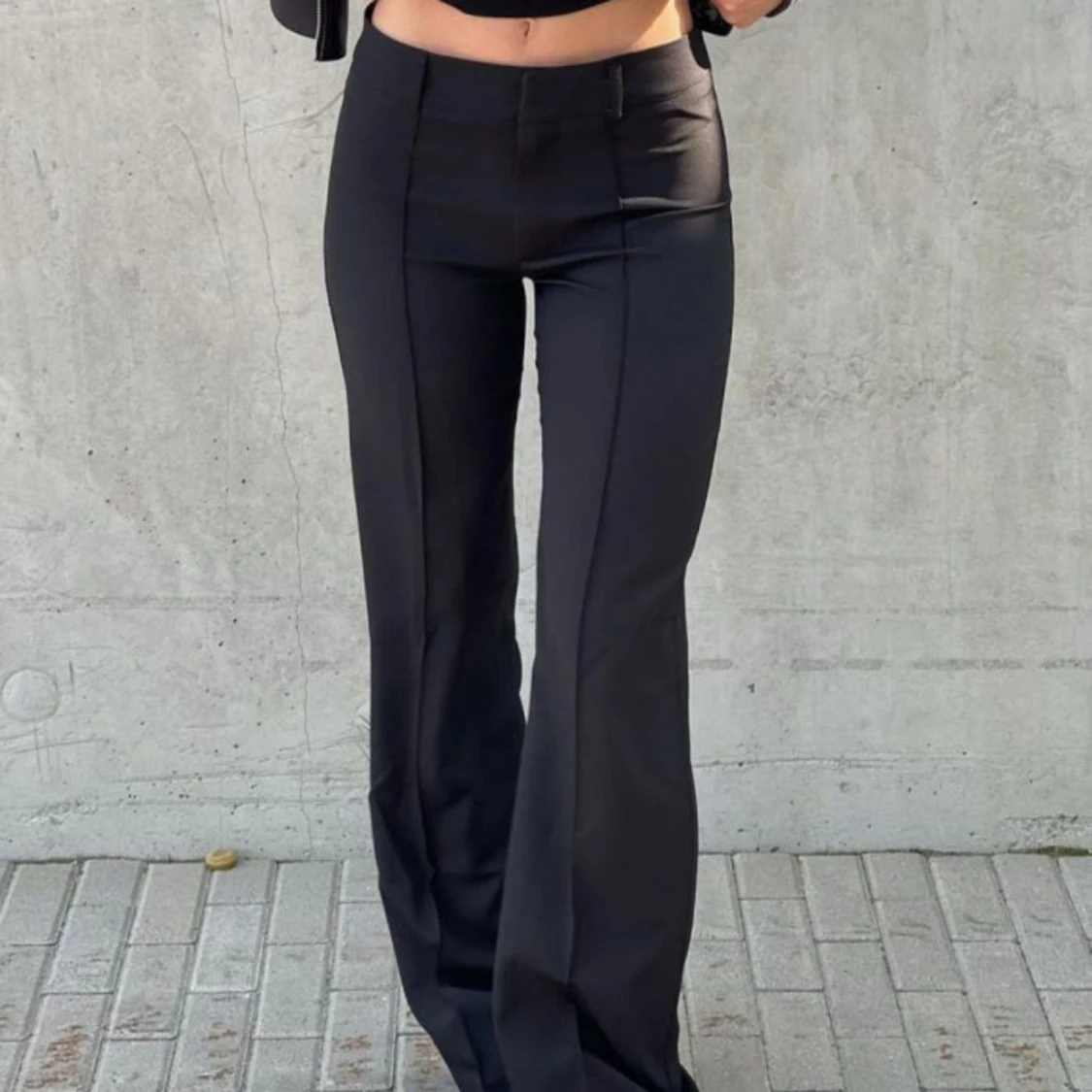 Sköna lågmidjade kostymbyxor i längden regular, som tyvärr inte kommer till användning längre. Lånad bild så skriv privat för mer specifika bilder. Pris går att diskutera💗