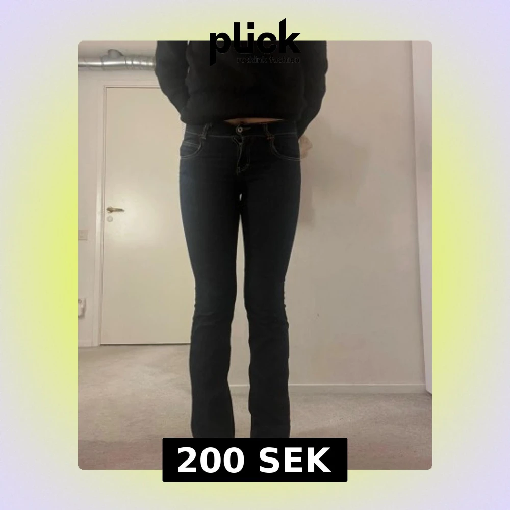 Super fina mörkblåa lågmidjade jeans från Vila💙bra längd på mig som är 176cm! Använda endast en gång och säljer då de är för små för mig! Storlek: W27 L34:) skriv för fler bilder💙