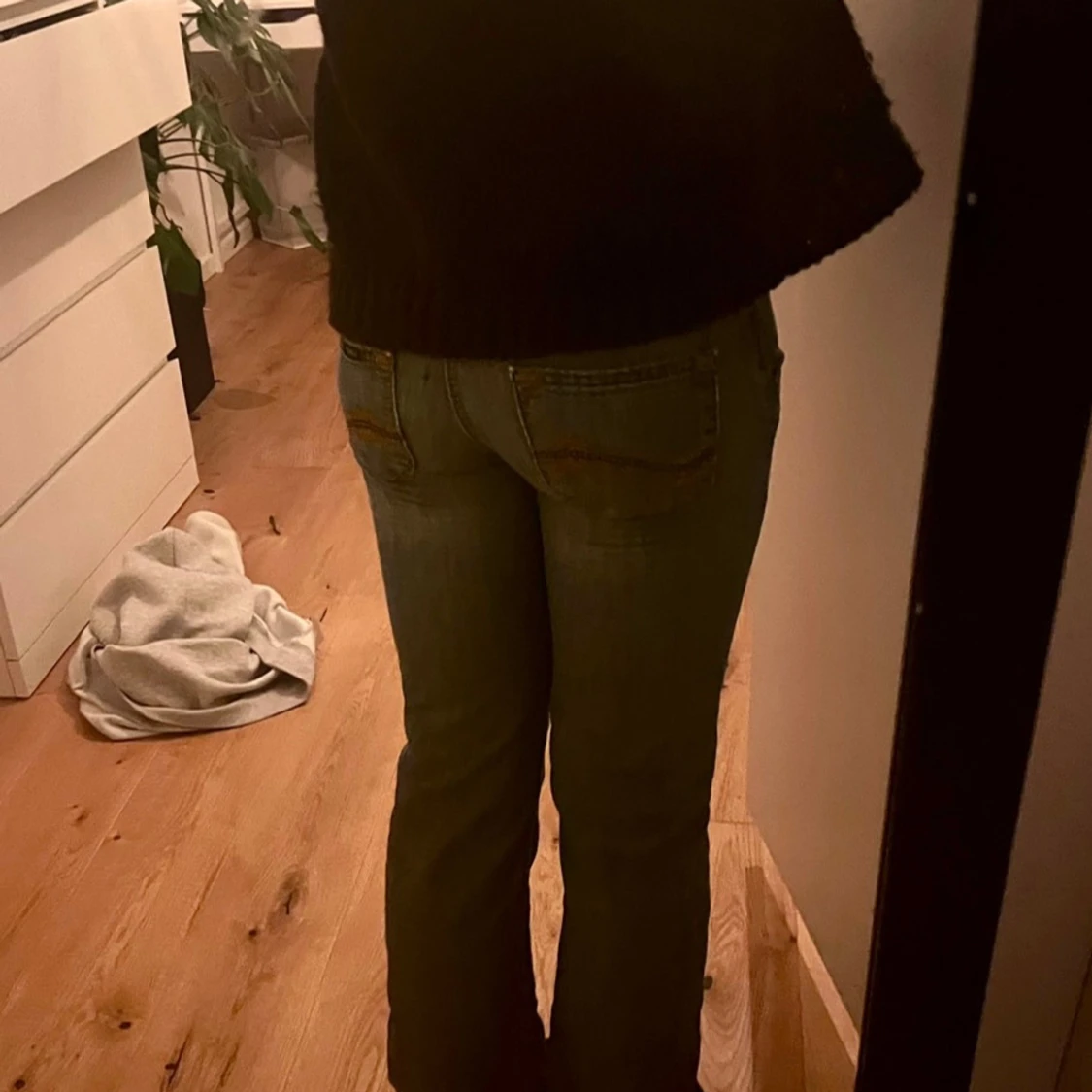 Säljer mina jeans då de ej kommer till användning längre. Fint skick förutom längst ner vid hälen där det är lite slitningar. Midjemått rakt över 36.5 cm & innerbenslängd 79 cm. Passar på mig som är 164 för referens. Skriv vid frågor💓