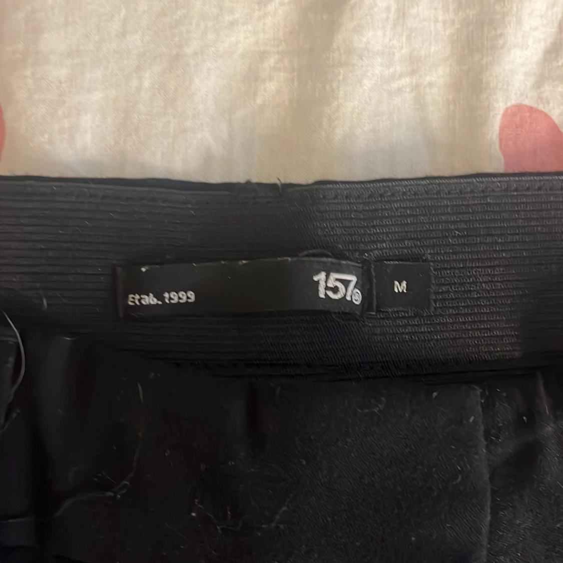 Snygga svarta kostymbyxor från 157 med klassisk rak passform och hällor för bälte. Byxorna har en stilren look och passar perfekt till en dressad outfit. Materialet känns mjukt och följsamt, vilket gör dem bekväma att bära hela dagen.