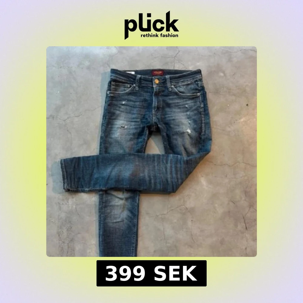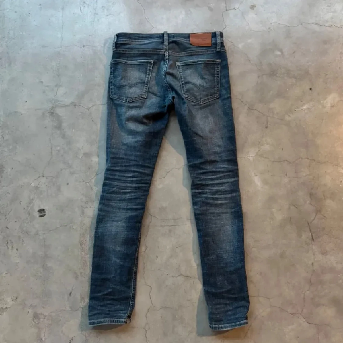 Snygga blå slim jeans från Jack & Jones med slitningar och tvättade detaljer. Klassisk femficksmodell med gylf och knapp, samt läderpatch bak i midjan. Perfekta för en avslappnad och trendig look.