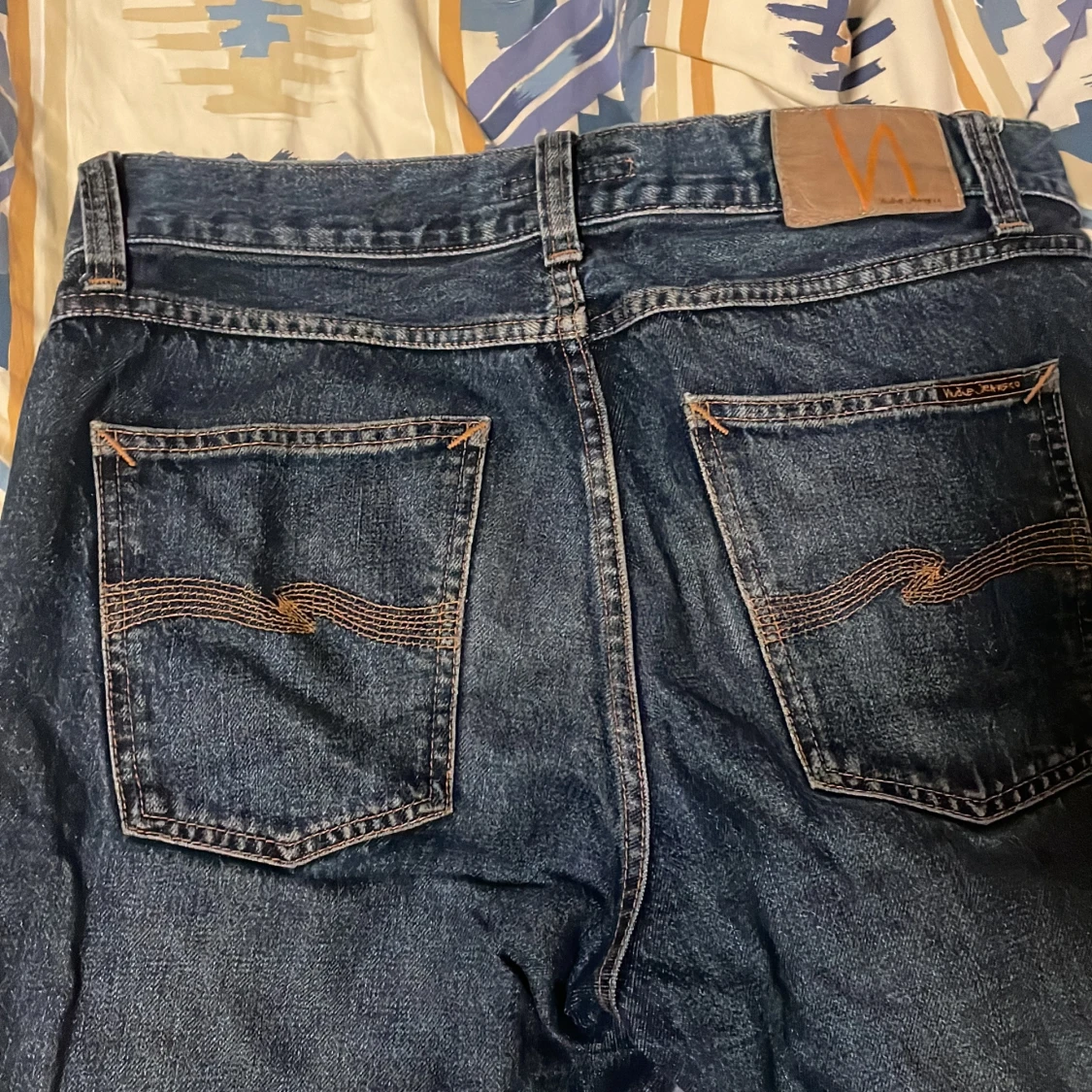 Säljer dessa feta mörkblåa nudie jeans då jag ej använt de på ett tag. Finns inga särskilda deffekter förutom det lilla hålet på bild 4, därmed det mer lägre priset. Nypris: Ca 1400kr. Mitt pris: 350kr. Pris kan diskuteras vid snabbt köp. Hör av er om några frågor! 🙌