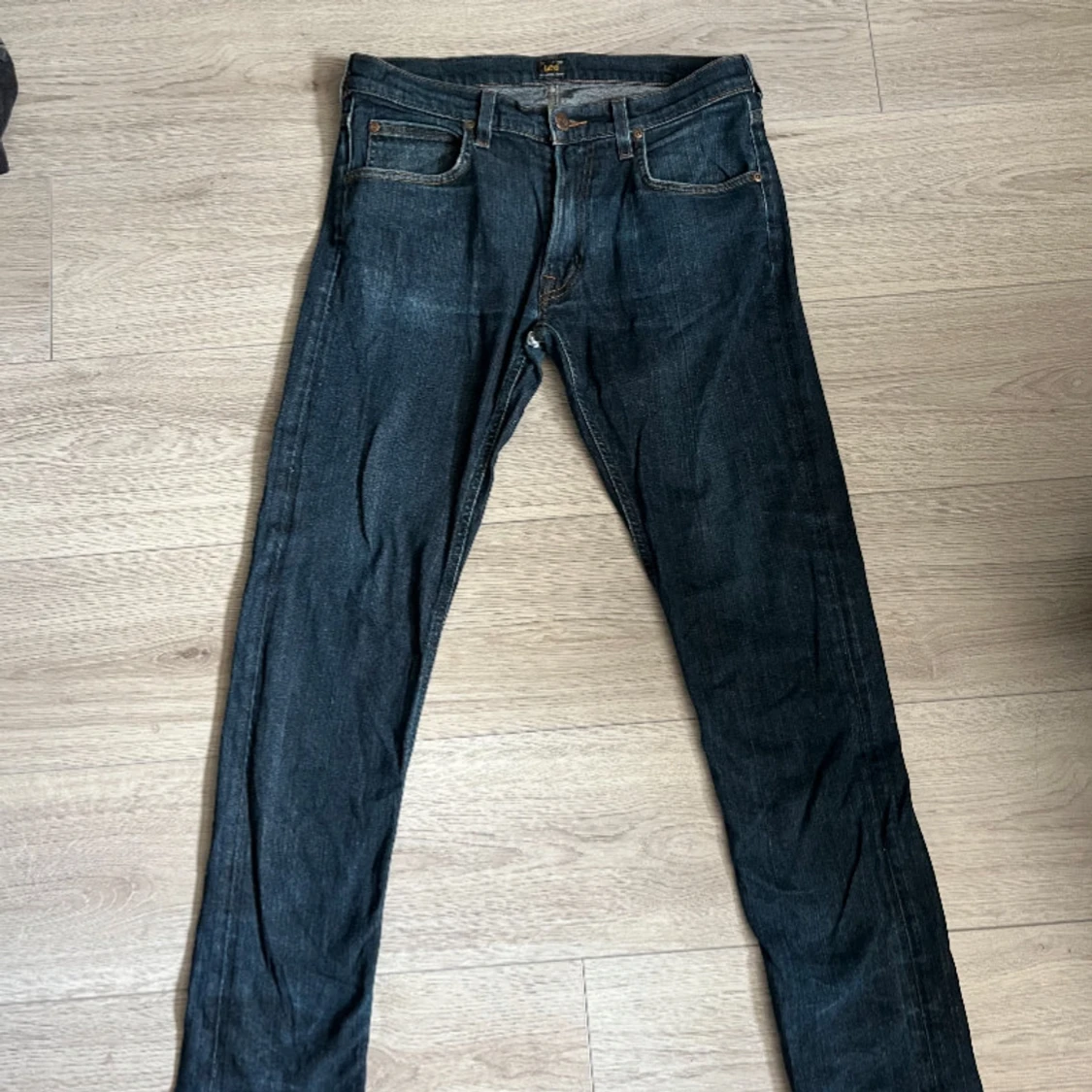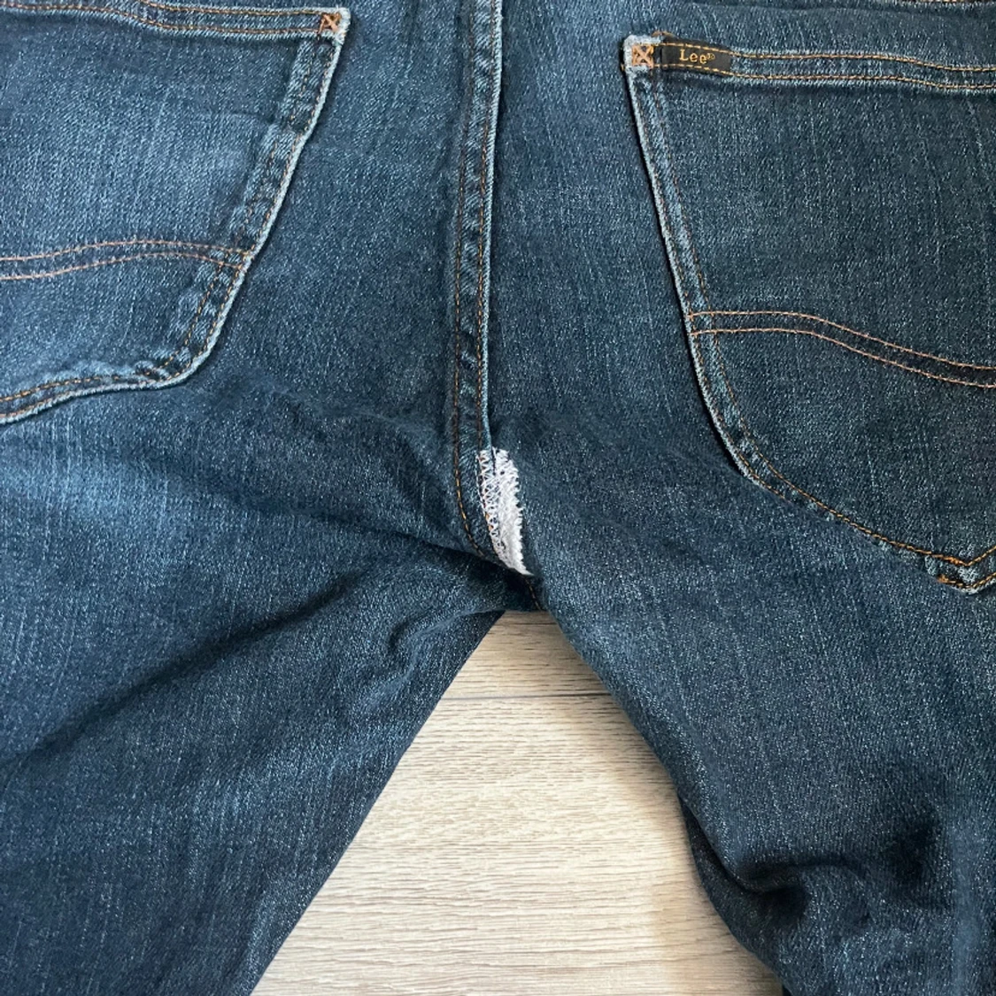 Snygga lee jeans i storlek 30/32, det är sydda i skrevet pga att dem hade gått sönder, därav priset. (kolla alla bilder)