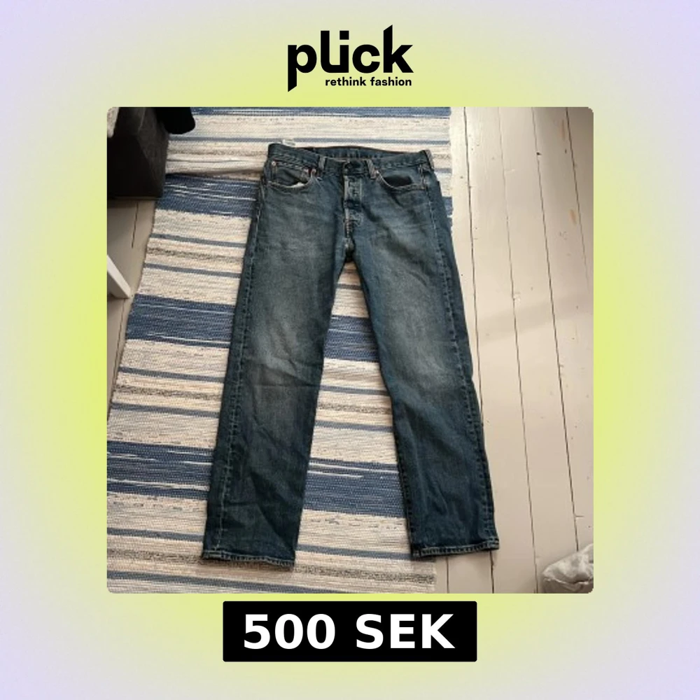Klassiska Levi's 501 jeans i blå denim med raka ben och normal passform. Byxorna har fem fickor, knappgylf och den ikoniska läderpatchen bak. Perfekt för dig som gillar tidlös stil och vill ha ett par schyssta jeans i garderoben.