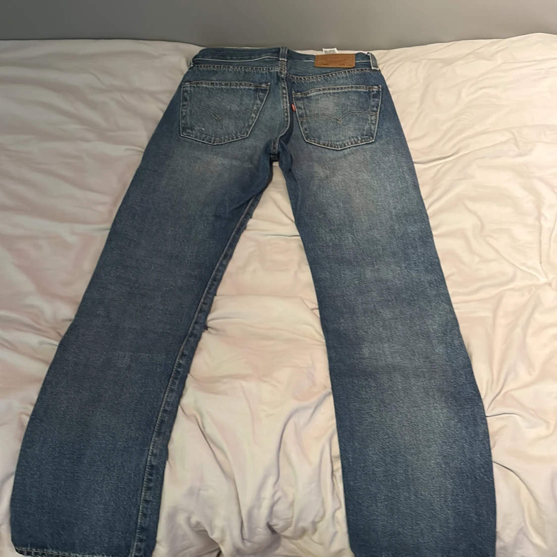 Klassiska Levi's 501 Premium jeans i mellanblå tvätt med snyggt slitna detaljer. Rak passform och hög midja, tillverkade i robust denim. Perfekta för dig som gillar tidlös stil och vill ha ett par jeans som funkar till allt.