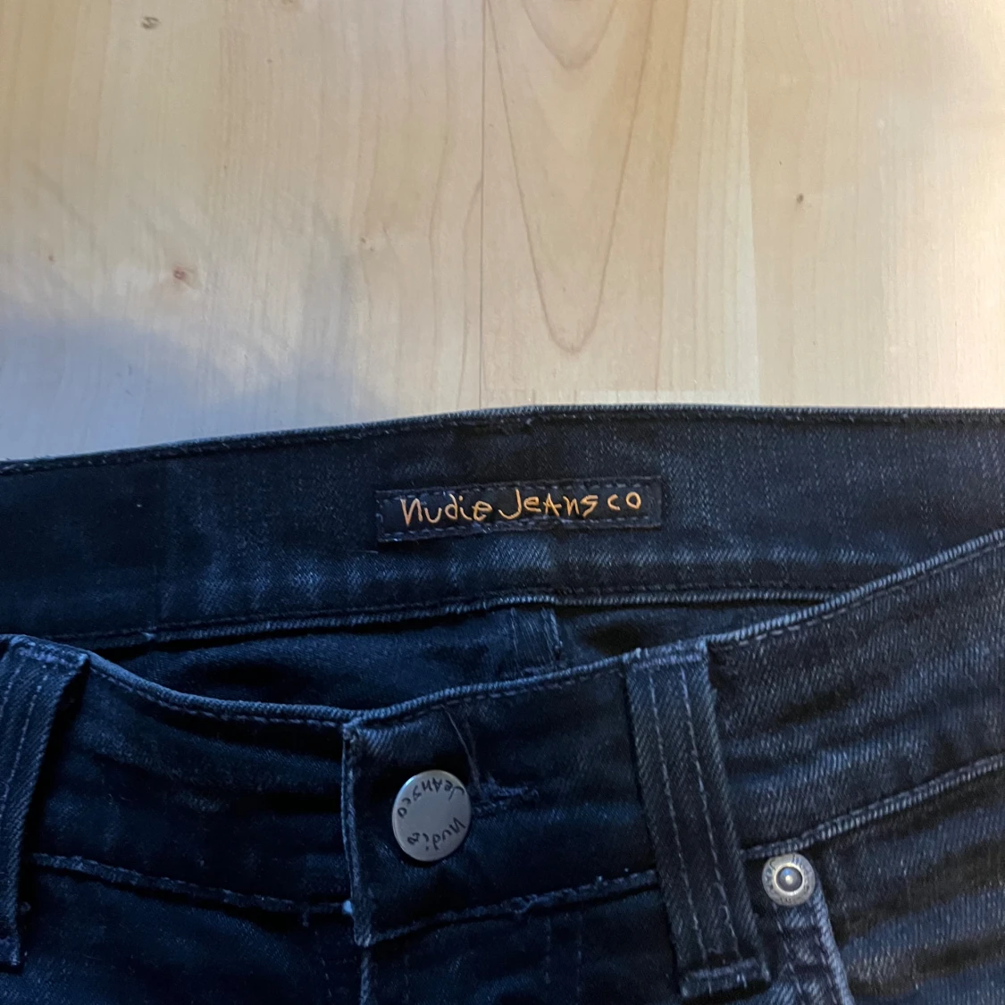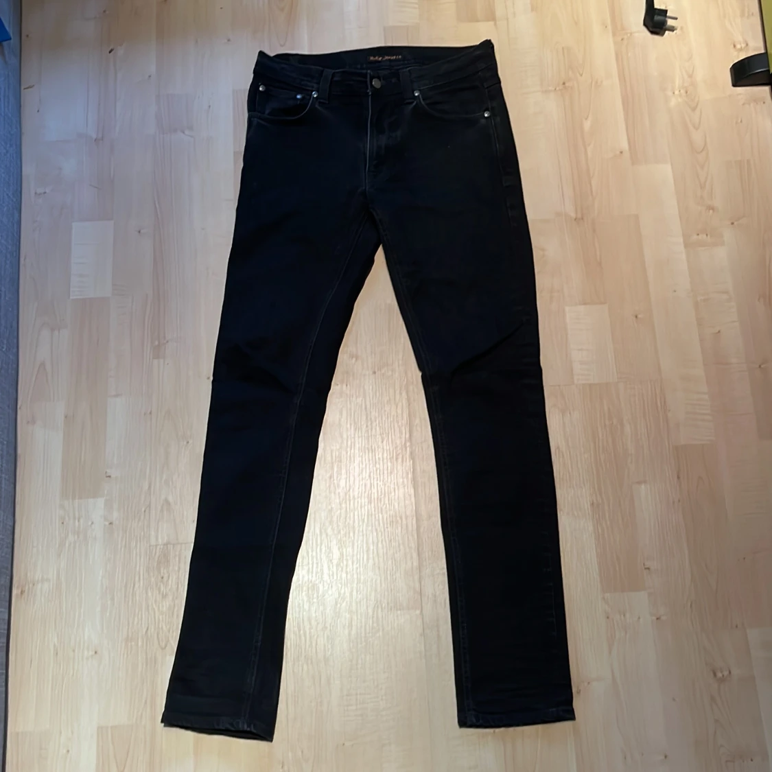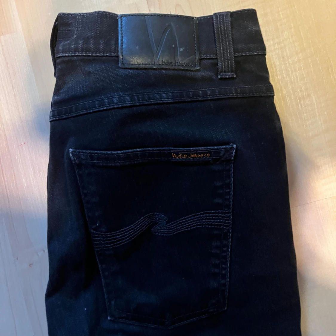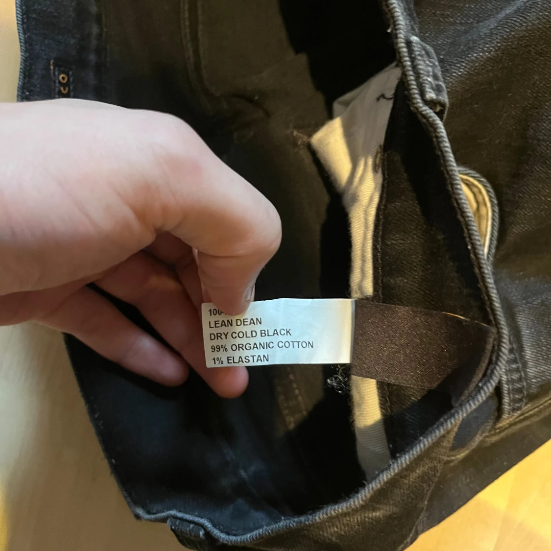 Svarta Nudie Jeans Lean Dean med smal passform och klassisk femficksdesign. Jeansen är tillverkade i 99% ekologisk bomull och 1% elastan för extra stretch. Snygga detaljer med svarta sömmar och diskret logga på bakfickan.