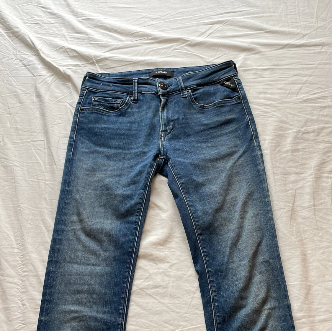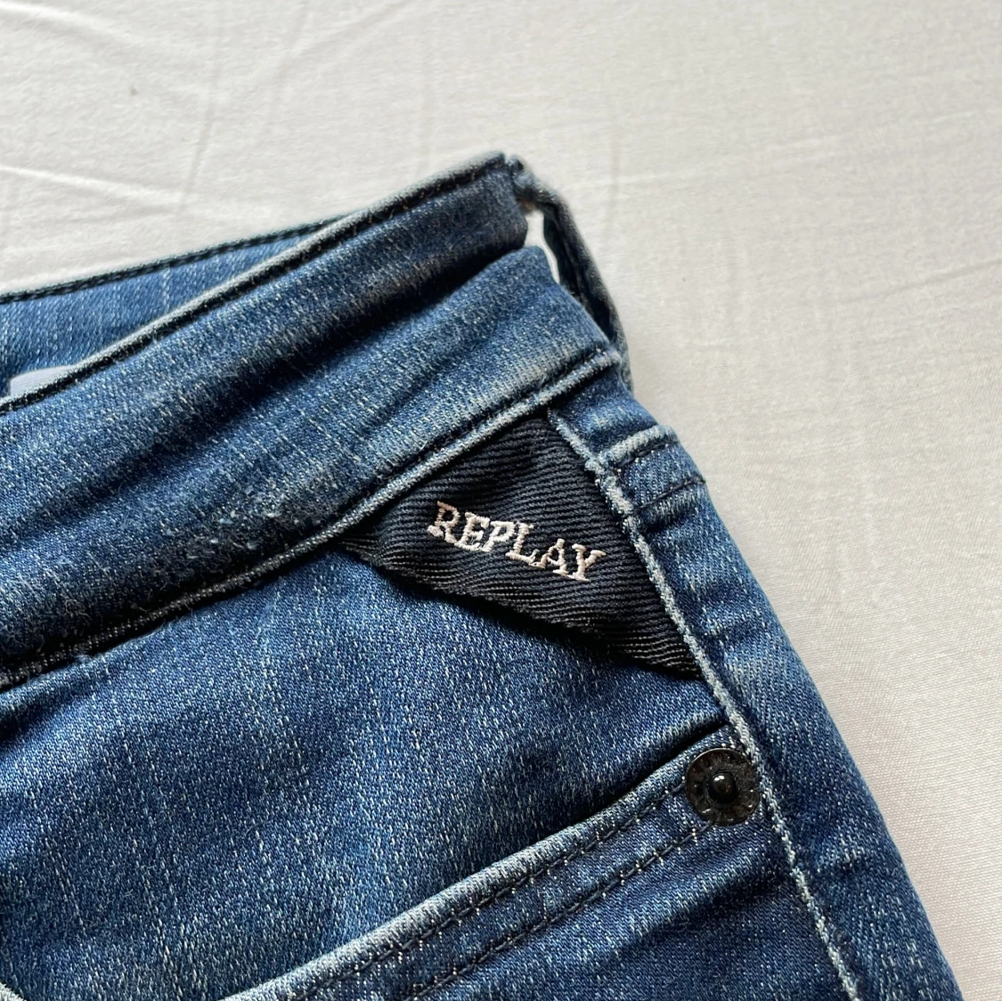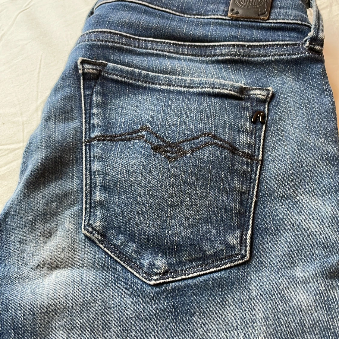 Snygga blå jeans från Replay med klassisk femficksdesign och diskret slitning. Jeansen har raka ben, normal passform och tydliga Replay-detaljer på bakfickan och läderpatch i midjan. Perfekta för dig som gillar stilrena och bekväma jeans.