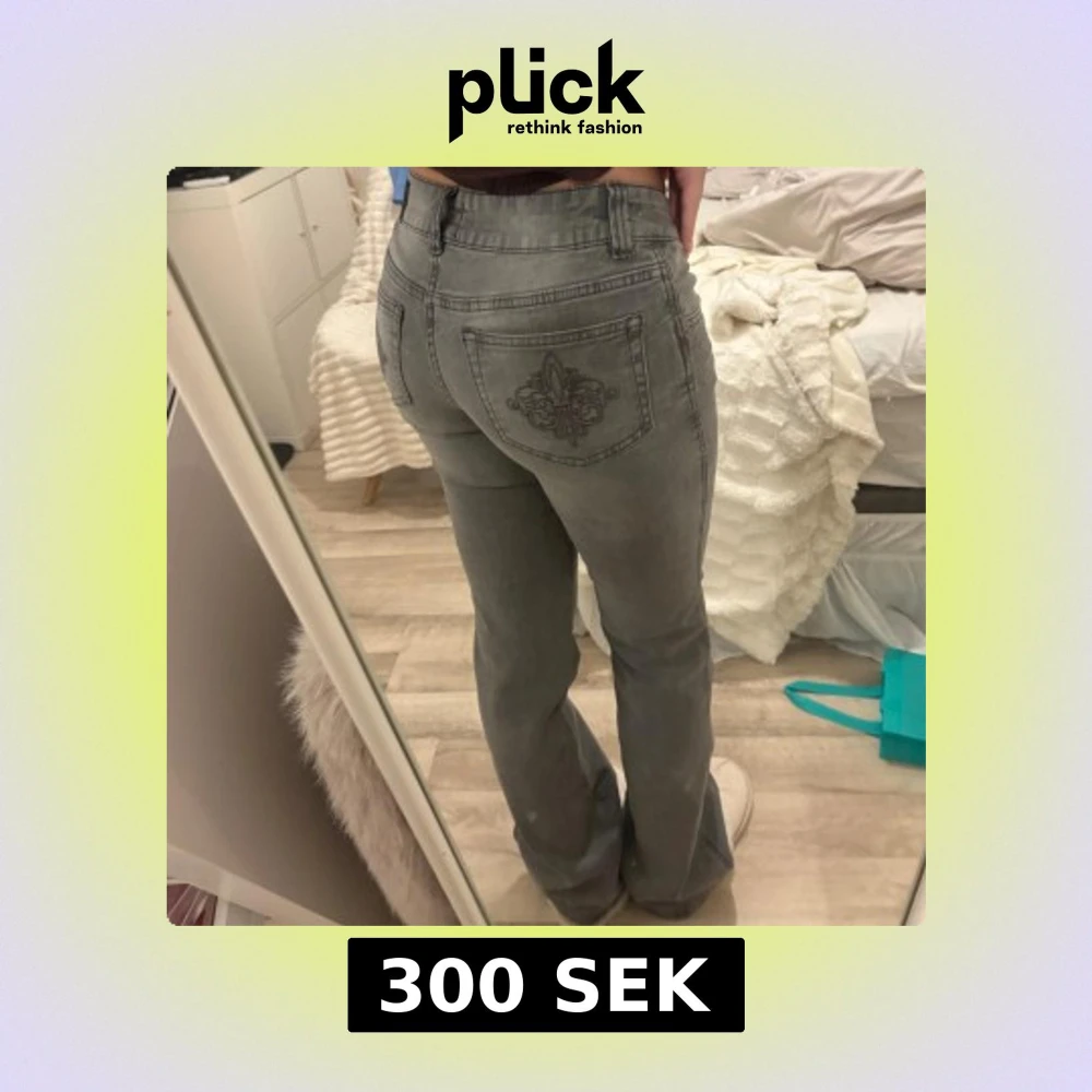 Snygga grå jeans från 157 i storlek XS med full längd. Modellen har raka ben och en broderad detalj på bakfickan som ger extra stilpoäng. Jeansen har klassisk femficksdesign och är tillverkade i mjukt bomullsmaterial. Oanvänd!