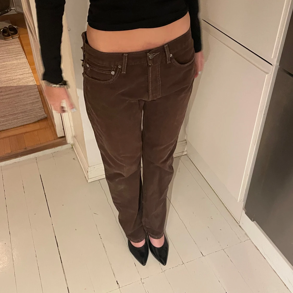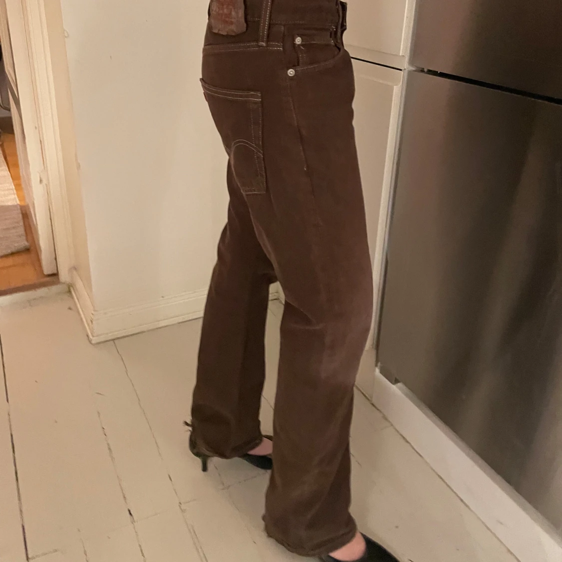 Lågmidjade bruna Levis Jeans! Så snygg passform på jeansen! Modellen är 175 cm lång, hör av er för mått på jeansen och vid frågor!