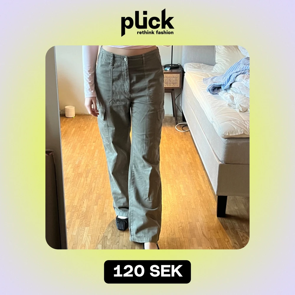 Säljer ett par gröna cargobyxor från Zara i storlek 38. Byxorna har en loose passform med flera praktiska fickor och är perfekta för en avslappnad stil. De är även långa i benen😊