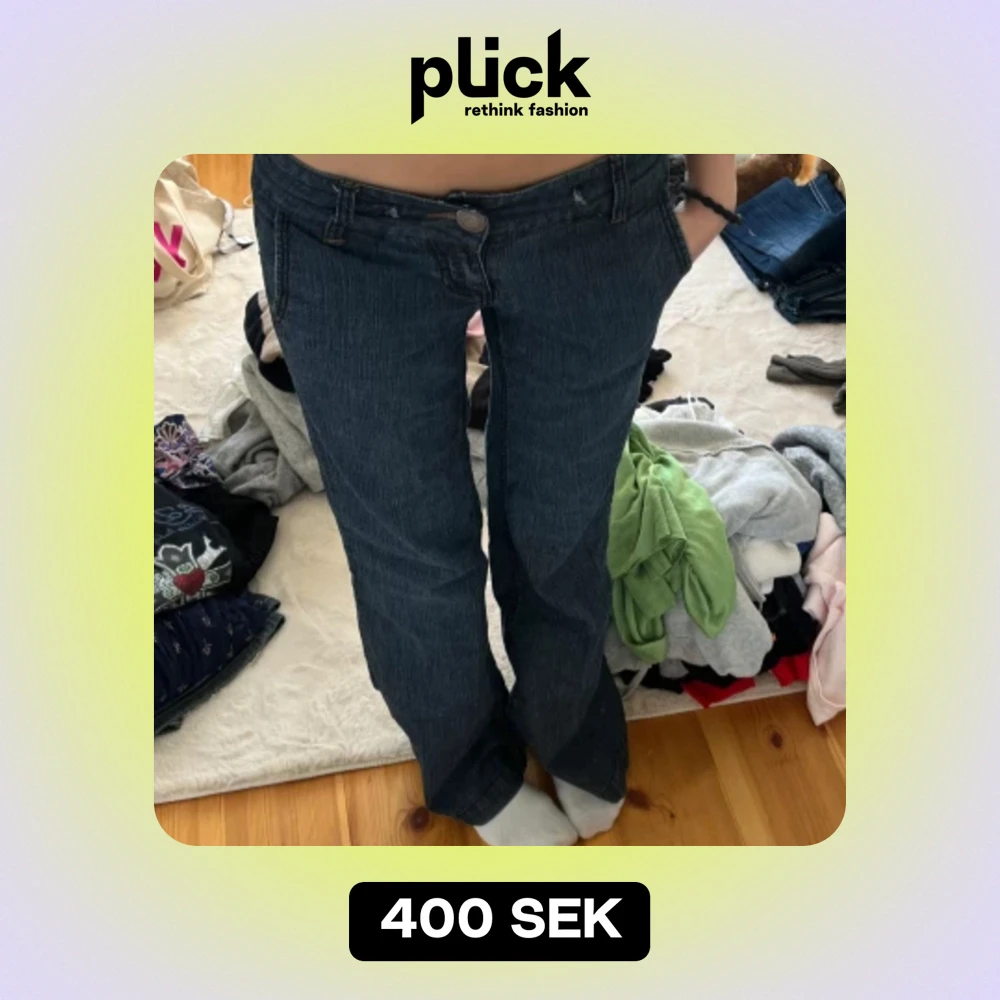 jätte mjuka jeans som tyvärr inte kommer till användning! De är lågmidjade + baggy / flare mått: innerbenslängd 83,5 cm o midja 35 rakt över!