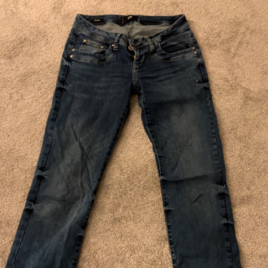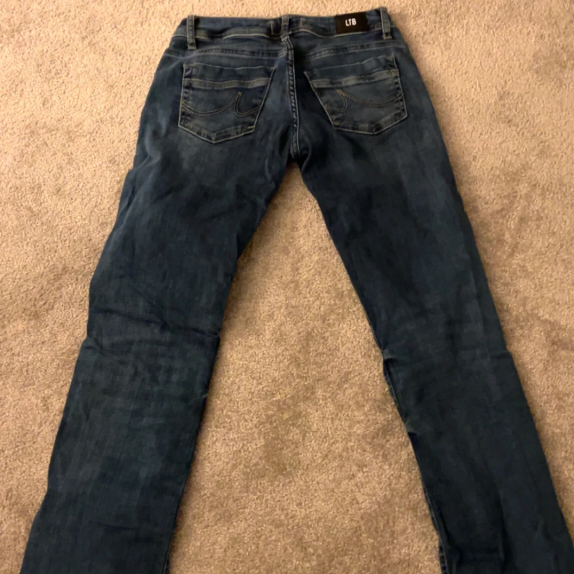 Säljer ett par klassiska blå LTB jeans i bootcut-modell. Jeansen har snygga slitningar framtill, fem fickor och kontrastsömmar. Tillverkade i mjukt denimtyg som sitter skönt och har en tidlös look. Perfekta för dig som gillar en avslappnad men ändå stilren vibe. Använd en gång