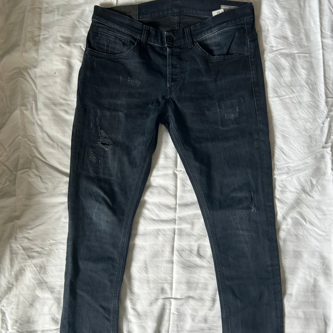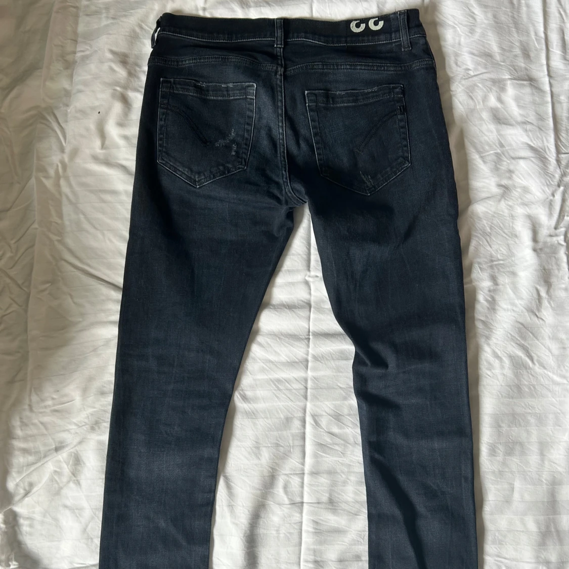 Snygga mörkblå jeans från Dondup i storlek 33 men passar 31-32. Jeansen har slim/skinny passform och snygga slitningar framtill. Klassisk femficksmodell med dragkedjegylf och vita logodetaljer bak i midjan. Inga defekter/skador!✌️