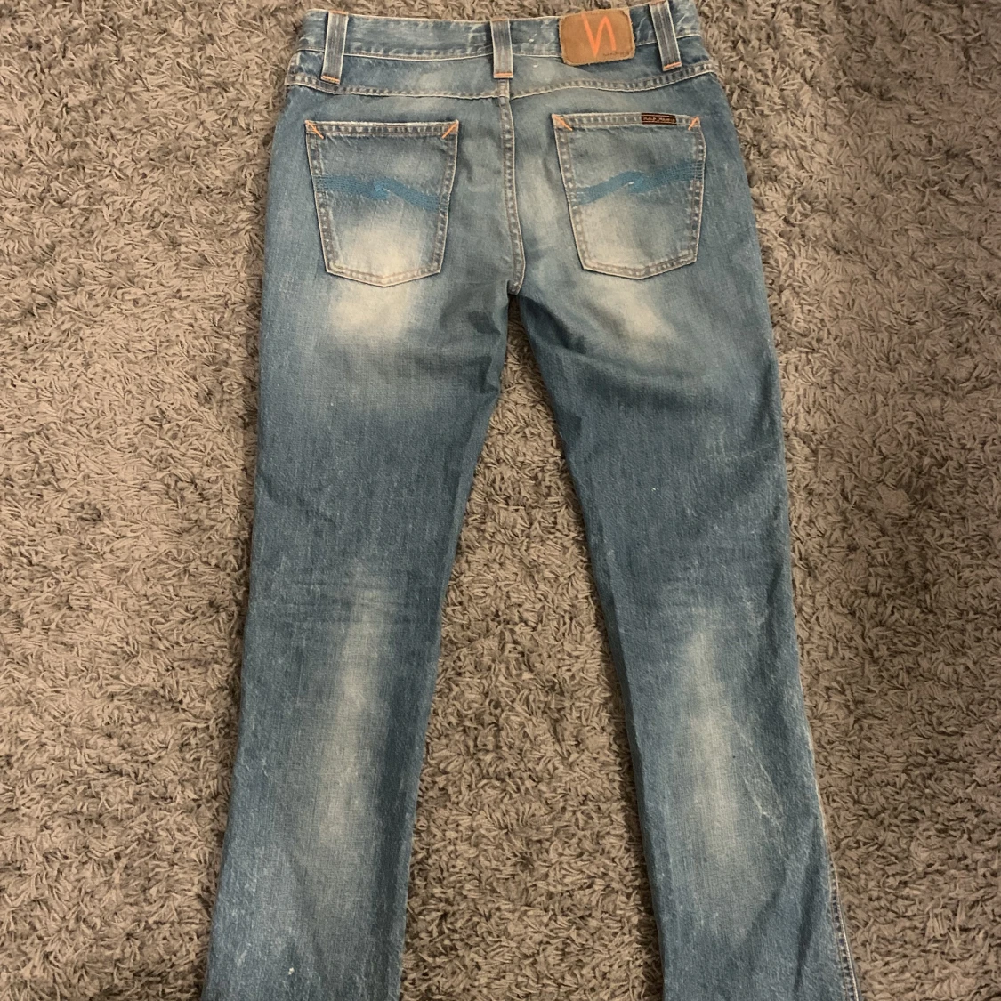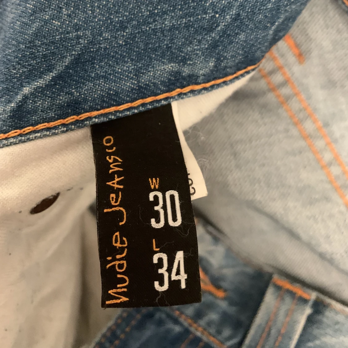 Säljer nu dess extremt snygga Jeansen från Nudie vilket är ett professionellt märke när det kommer till Jeans. Det är en blandning på olika typer av blå men nyansen av färgen är ljus. Inte använda särskilt mycket, skick 7/10 Ursprungliga priset är 1500kr