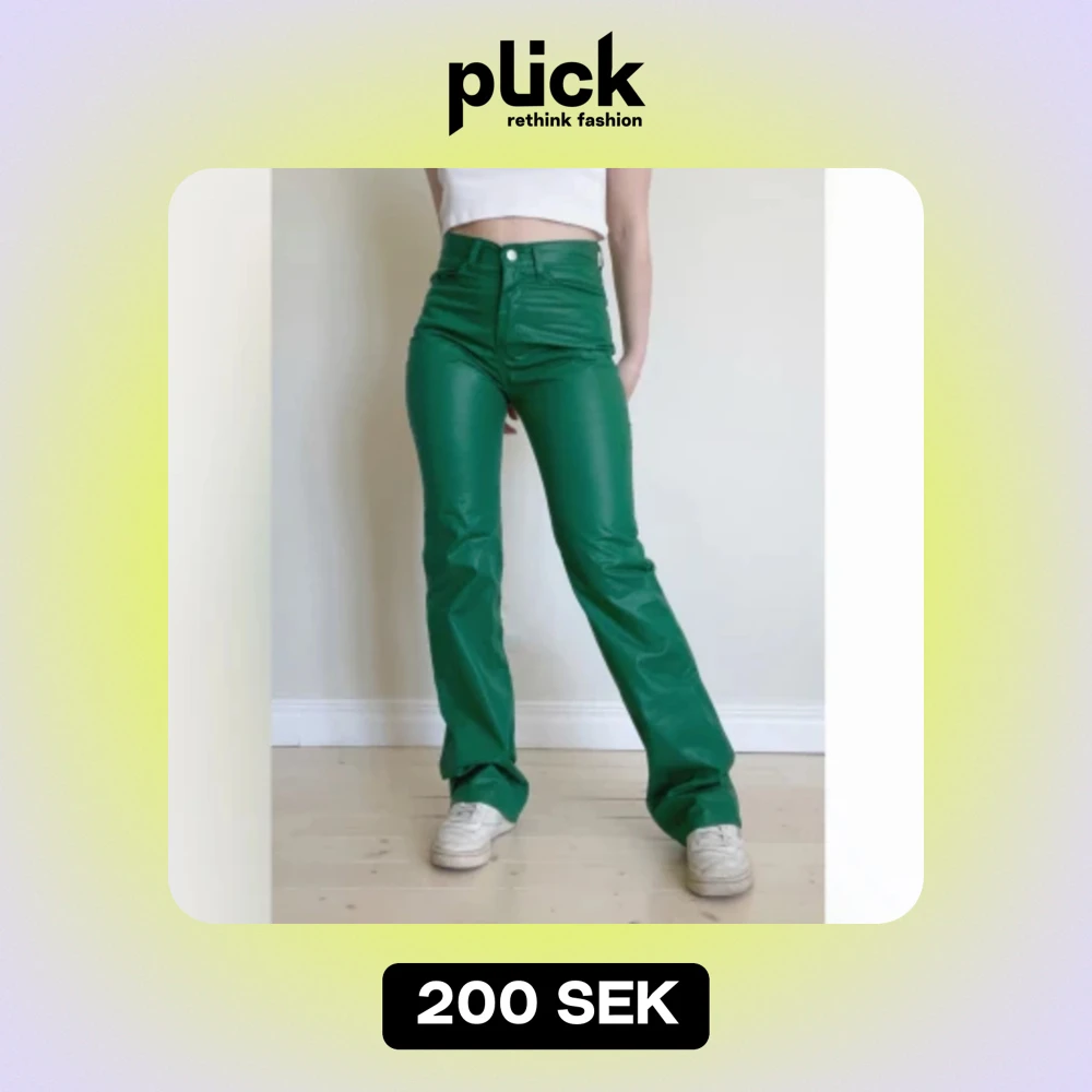 Byxor i konstmaterial (liknar skinn). Hög midja. Strl XS/S. Midjemått: 65 cm, Innerbenslängd: 76 cm. Fint skick! Se även mina andra annonser, 3 för 2 på allt! 💫