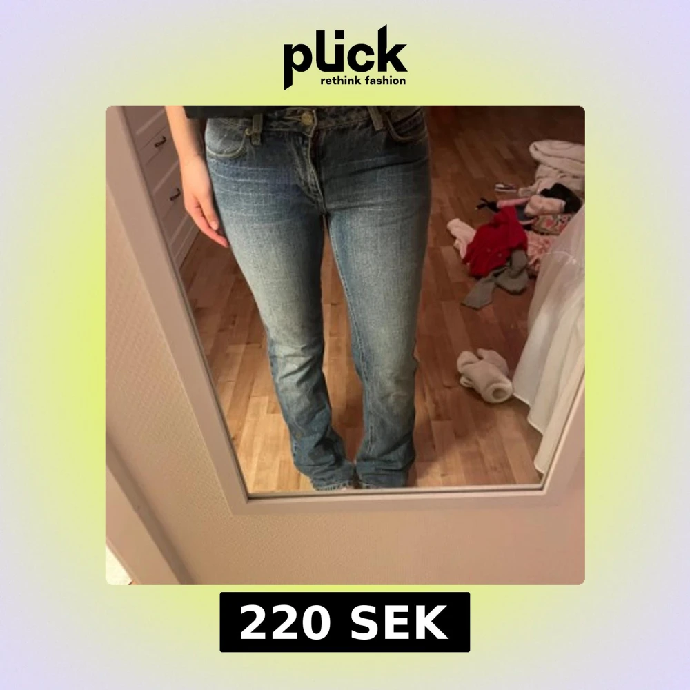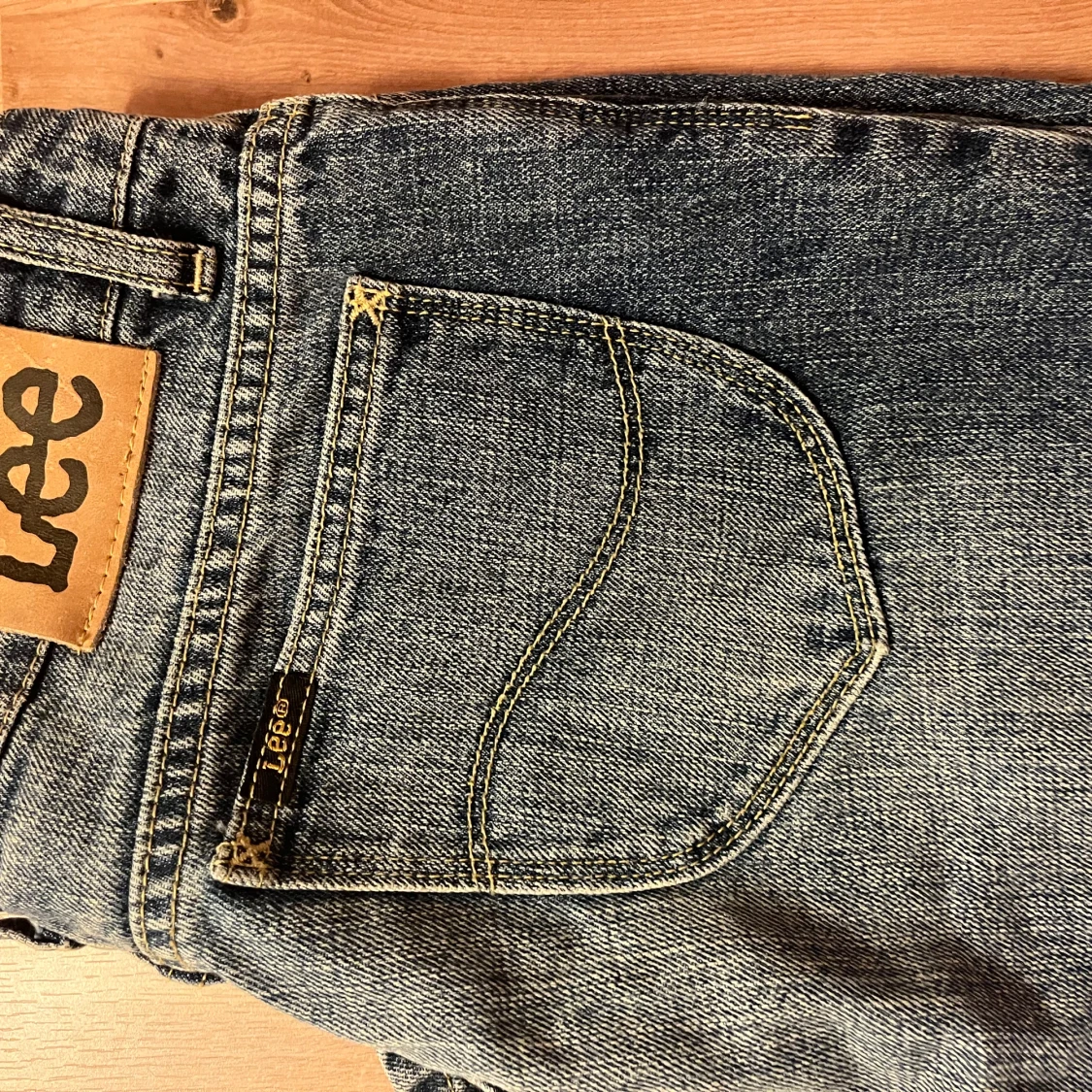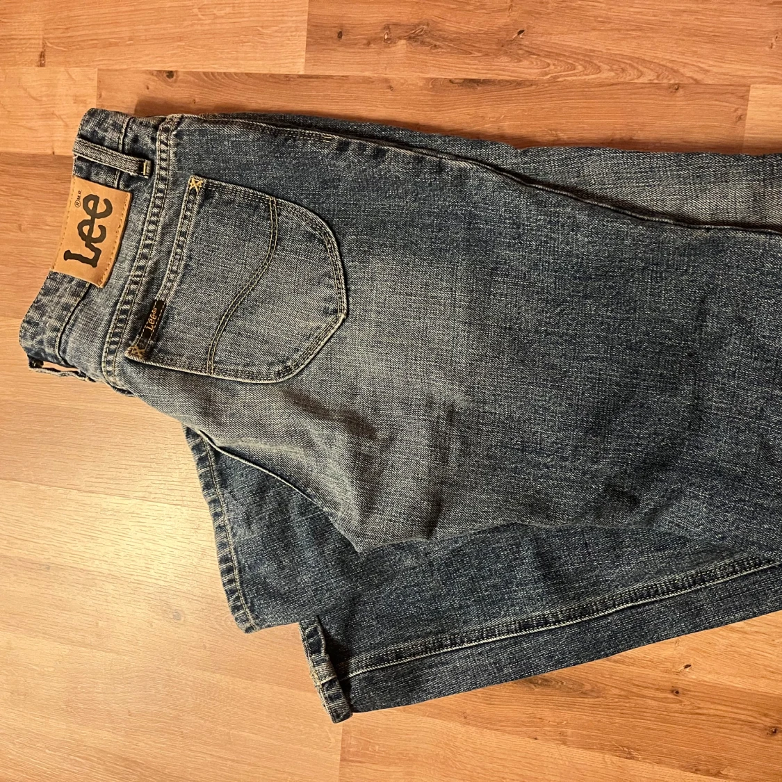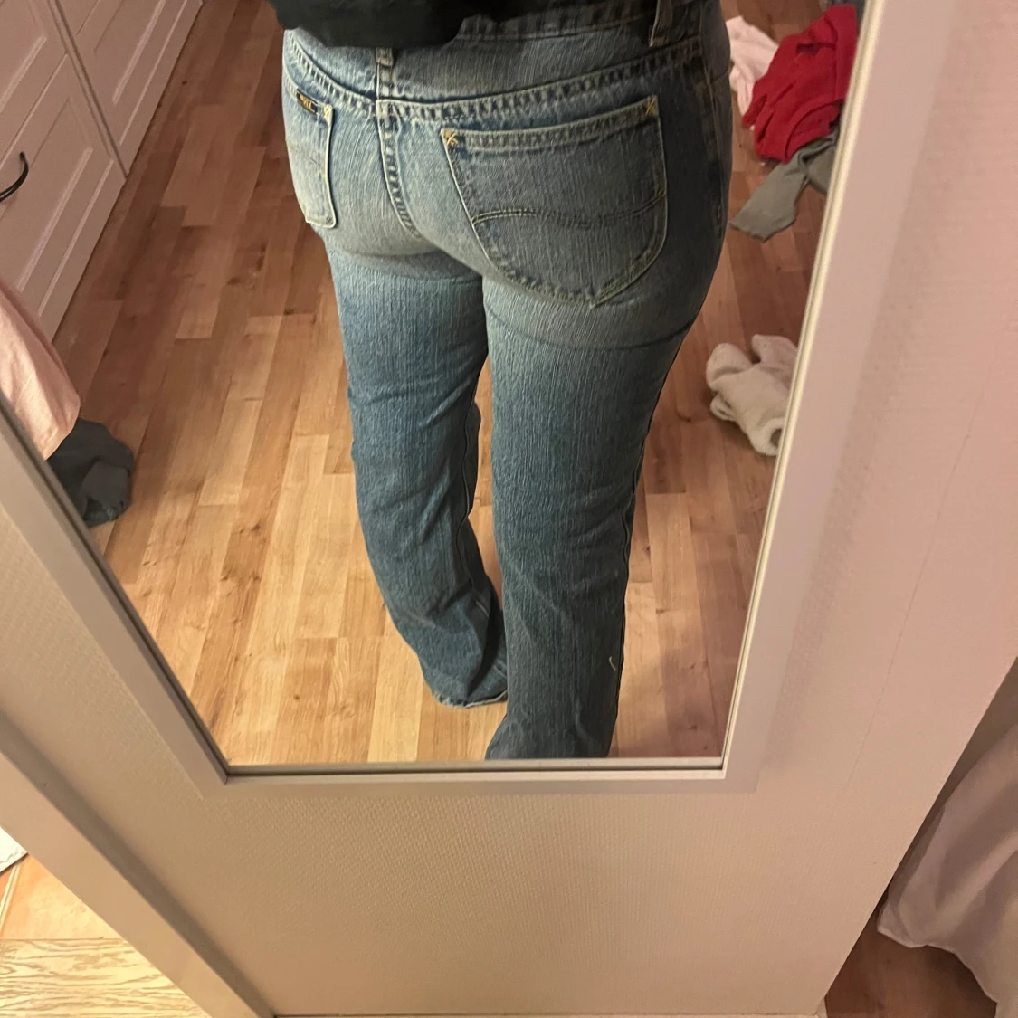 Säljer ett par klassiska blå jeans från Lee i bootcut-modell. Jeansen har normal passform, fem fickor och snyggt slitna detaljer. Tillverkade i 100% bomull för en autentisk denimkänsla. Perfekta för dig som gillar en tidlös look.