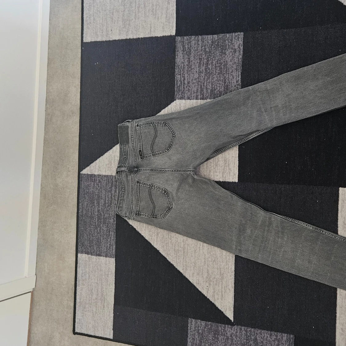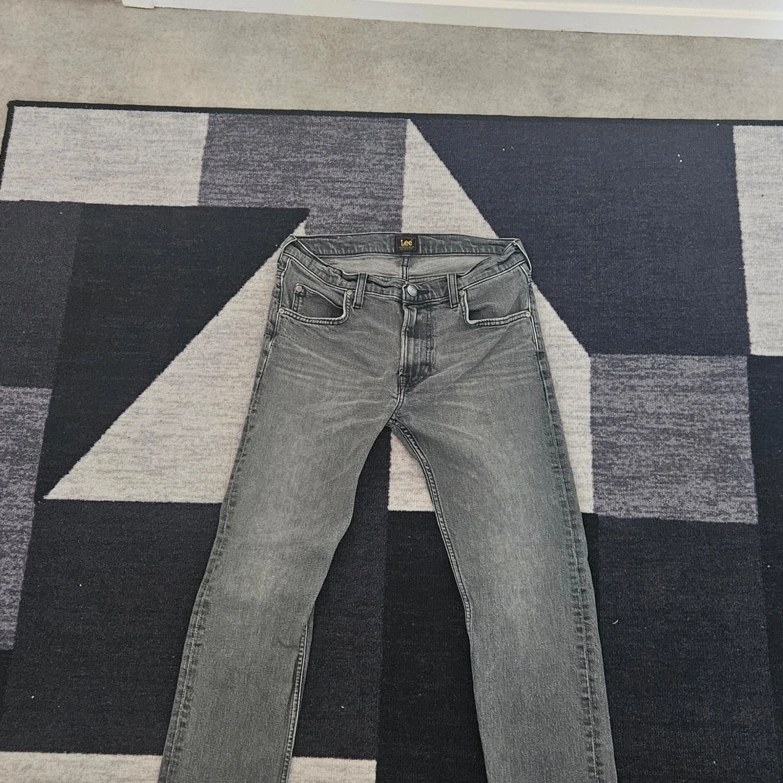 Snygga grå jeansbyxor Lee med en klassisk femficksdesign. Byxorna har en rak passform och är tillverkade i ett slitstarkt denimtyg. Perfekta för en stilren vardagslook.
