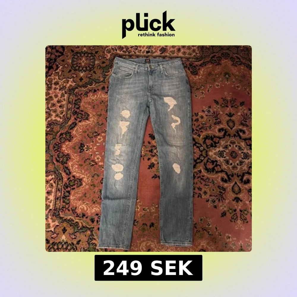 Ljusblå jeans från Lee med snygga slitningar och hål på framsidan. Klassisk femficksmodell med raka ben och normal passform. Jeansen har Lee-logga på bakfickan och är tillverkade i mjukt denimtyg. Perfekta för en avslappnad streetstil. Midja 37cm längd 100cm (63)