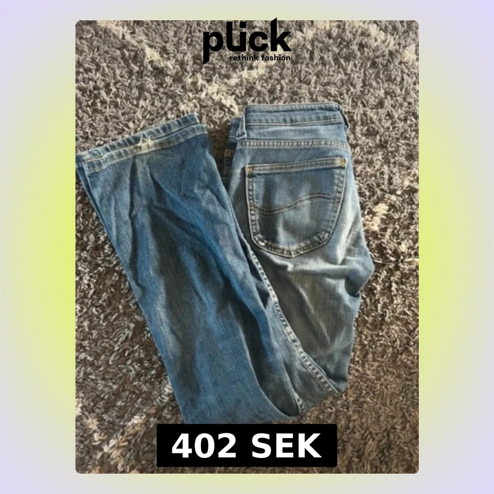 Snygga blå jeans från Lee med klassisk bootcut passform och normal midja. Jeansen har midjemåttet 36 rakt över och Inrebenslängd 73