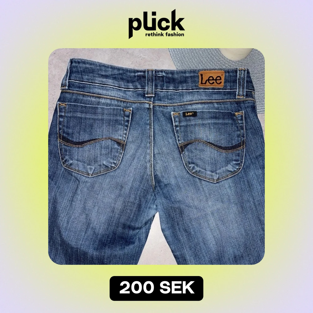 Säljer ett par snygga blå jeans från Lee i bra skick. De har en klassisk femficksdesign och är tillverkade i slitstarkt denim.