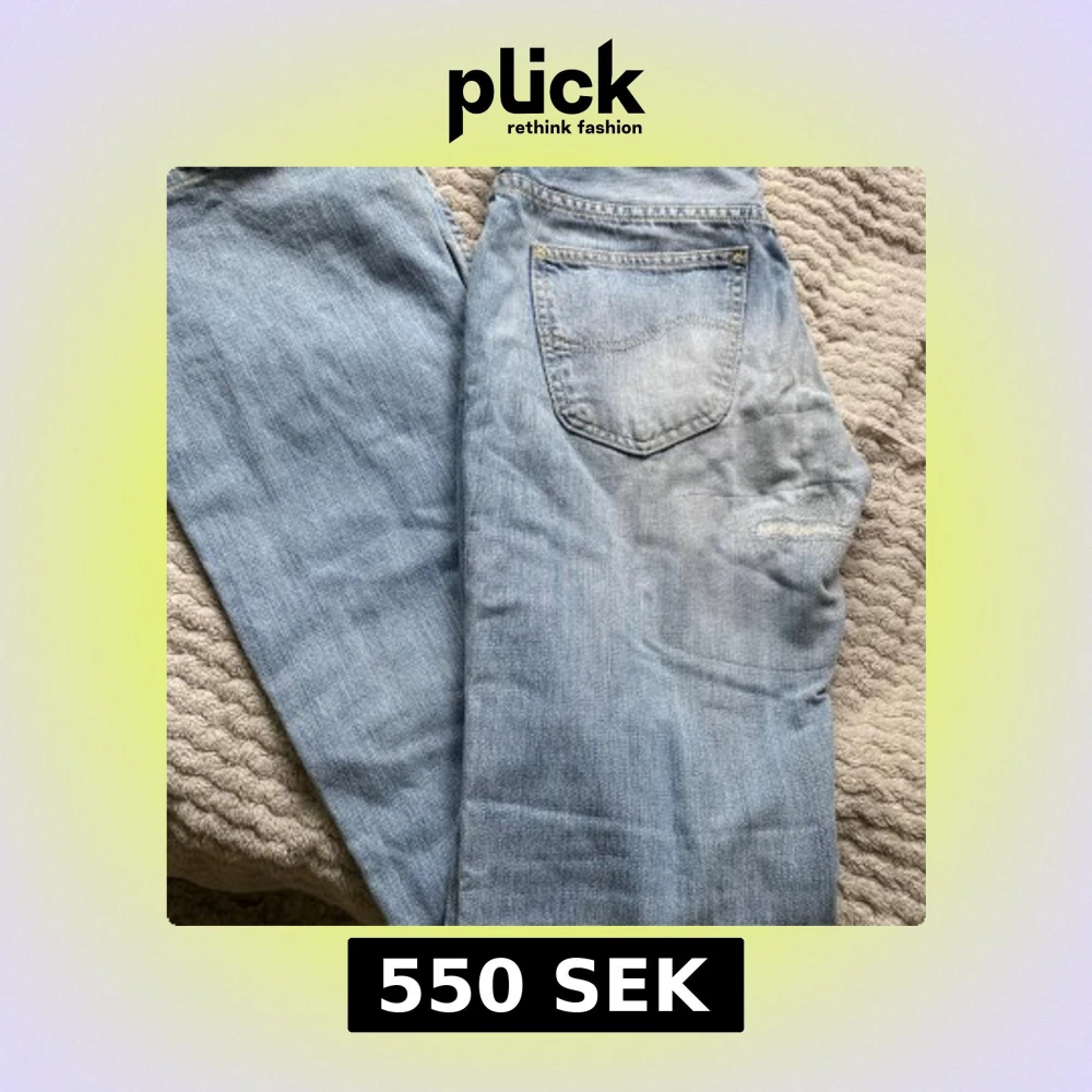 Säljer ett par klassiska ljusblå jeans från Lee med bootcut. Jeansen Lee-logga på bakfickan samt läderpatch i midjan.