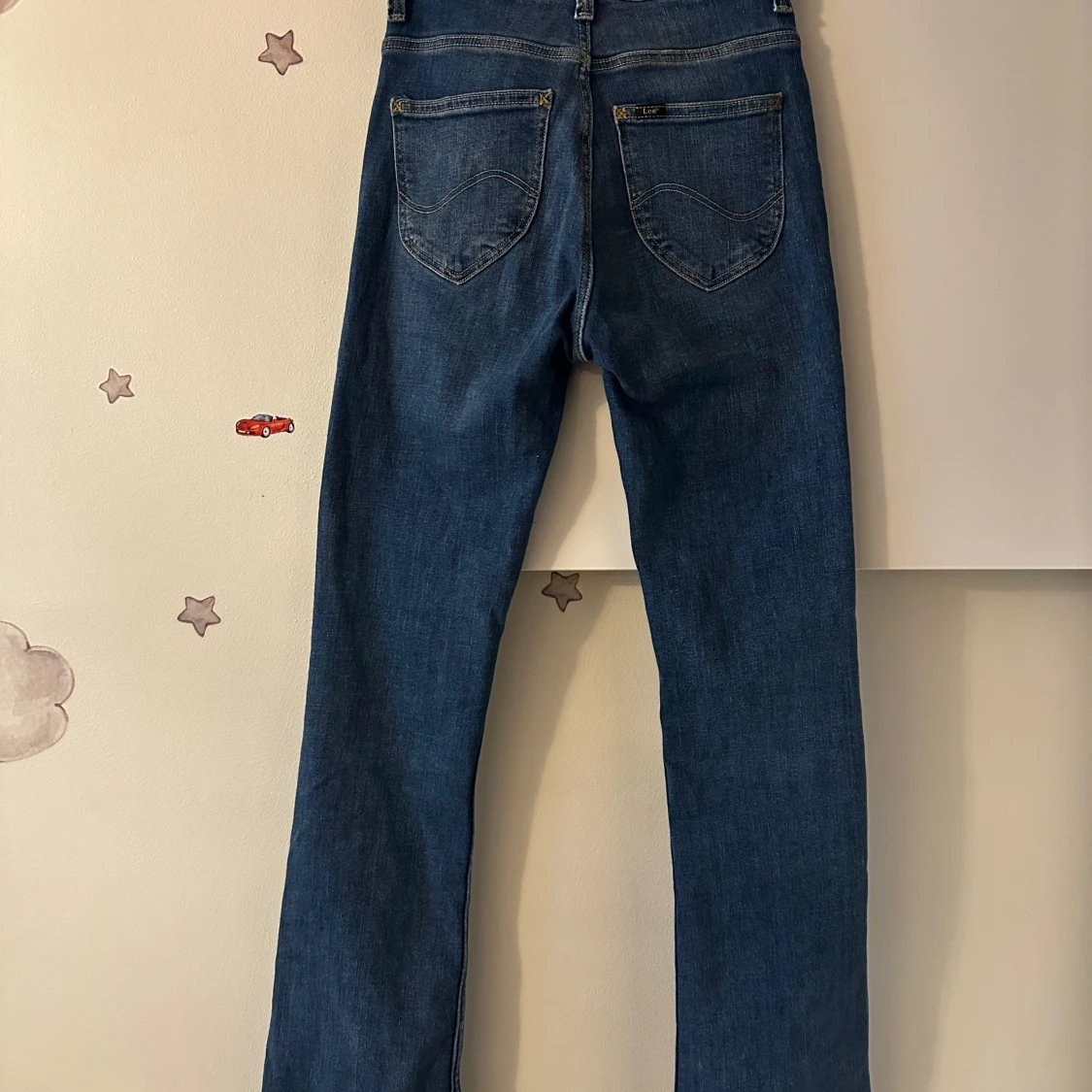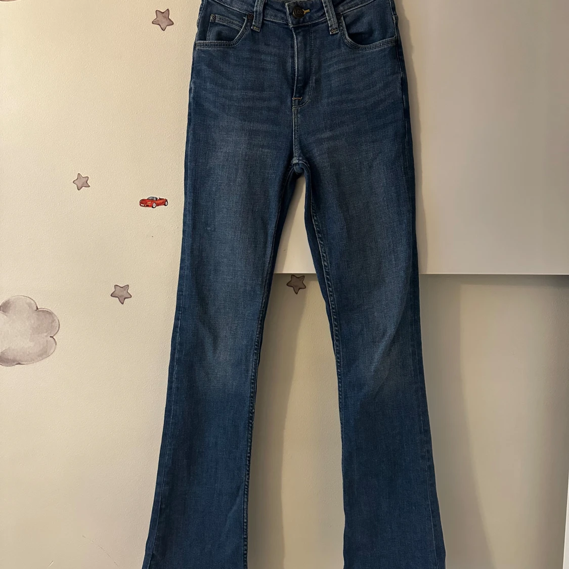 Snygga blå bootcut jeans från Lee, modell Breese Boot. Klassisk femficksdesign, normal passform och hög midja. Jeansen är i ett mjukt denimtyg med lätt tvättad look och har dragkedja och knapp framtill.