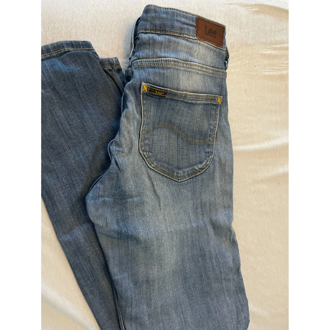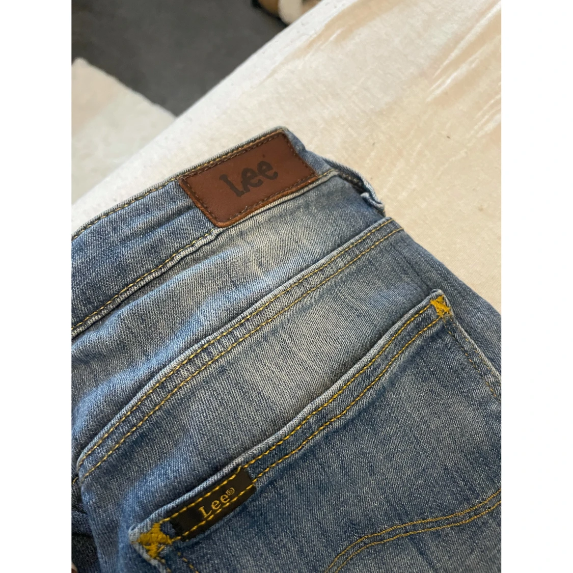 Lee jeans i storlek 26 och längd 33. Passar tyvärr inte mig längre så därför säljer jag dom. Finns inget fel på plagget, det är använt men i bra skick. Jeansens färg stämmer mer som i bilderna jag har tagit. Kan även skicka med spårbart för 66kr om man vill det.