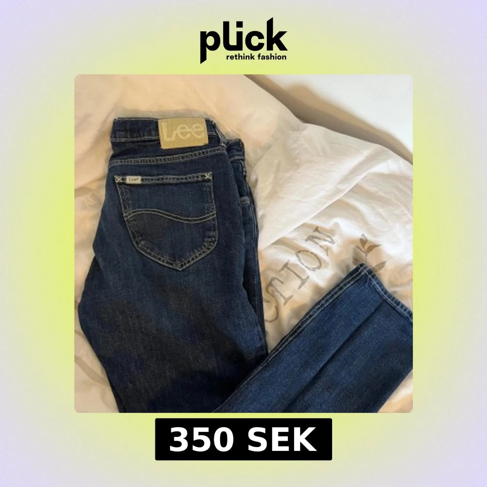 Säljer ett par klassiska mörkblå jeans från Lee med normal passform. Jeansen har fem fickor, dragkedja och knapp i midjan samt tydliga kontrastsömmar. Perfekta för dig som gillar tidlös denimstil.