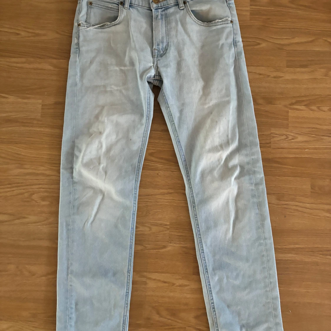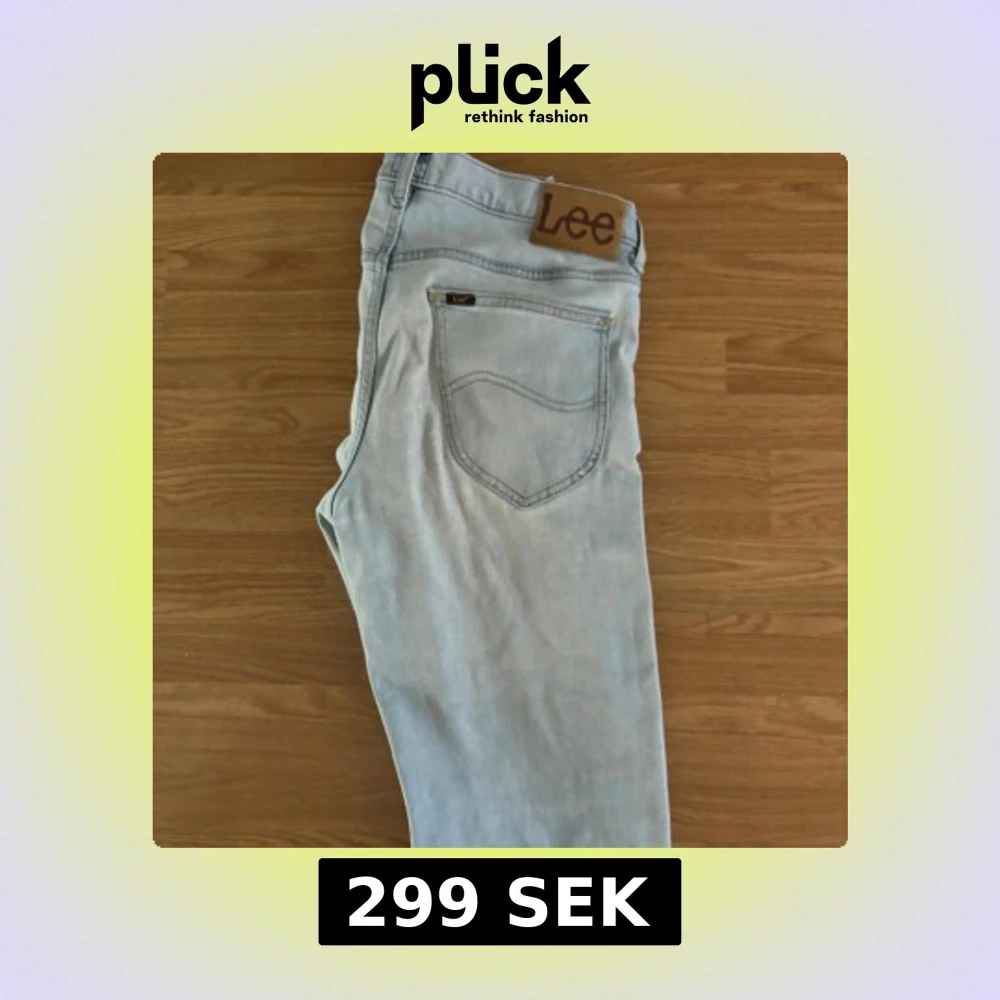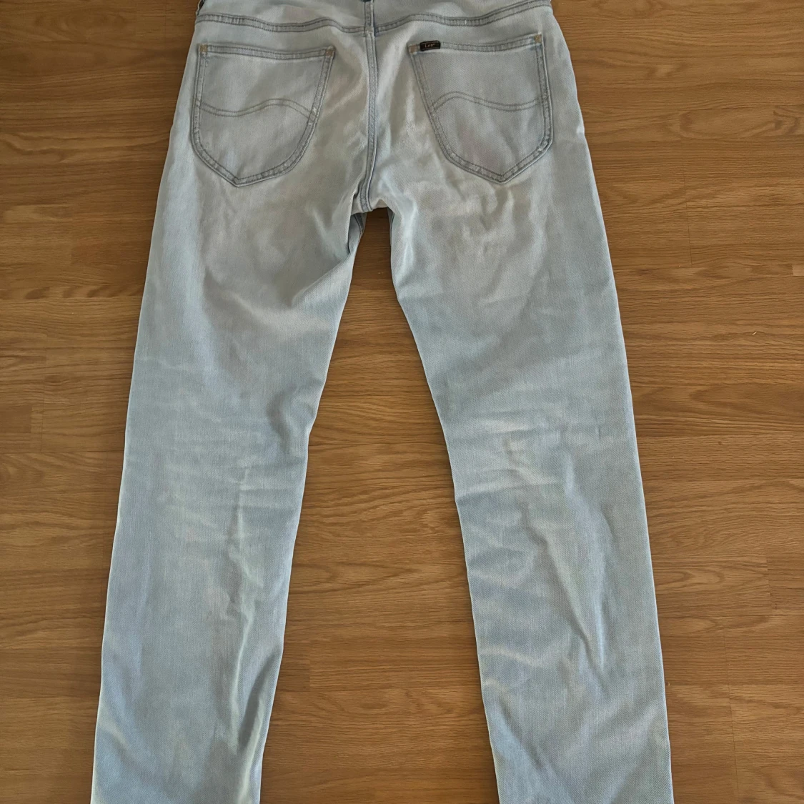 Säljer ett par ljusblå jeans från Lee, modell Daren Zip Fly. Klassisk femficksdesign med dragkedjegylf och Lee-lapp bak i midjan. Jeansen har en rak passform och är perfekta för en avslappnad stil.