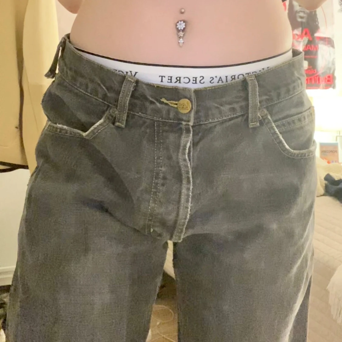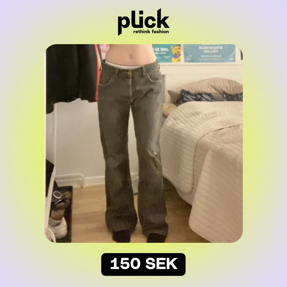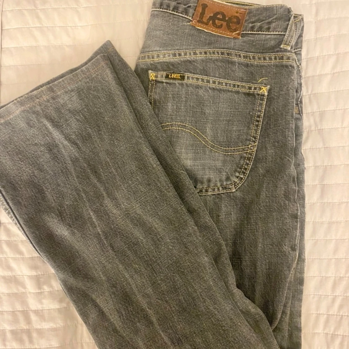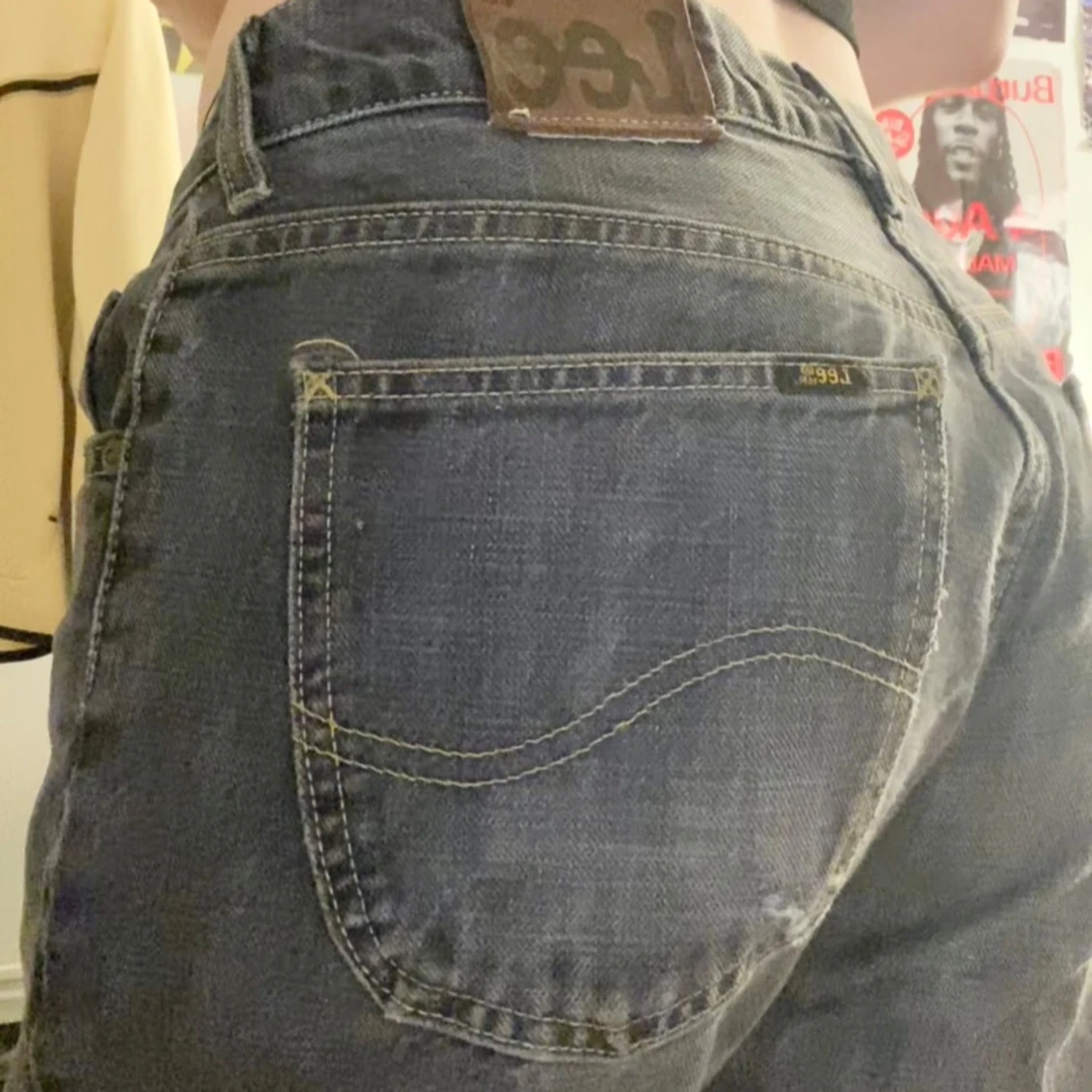 Baggy/bootcut lee jeansen, köpta second hand. En av skärpbanden har lossat lite men förutom de är de hyfsat fin kvalite. Vet inte exakt storlek men jag är 156cm och brukar bära S, men de är stora på mig också. Hör av er för fler bilder eller mått🥰🥰