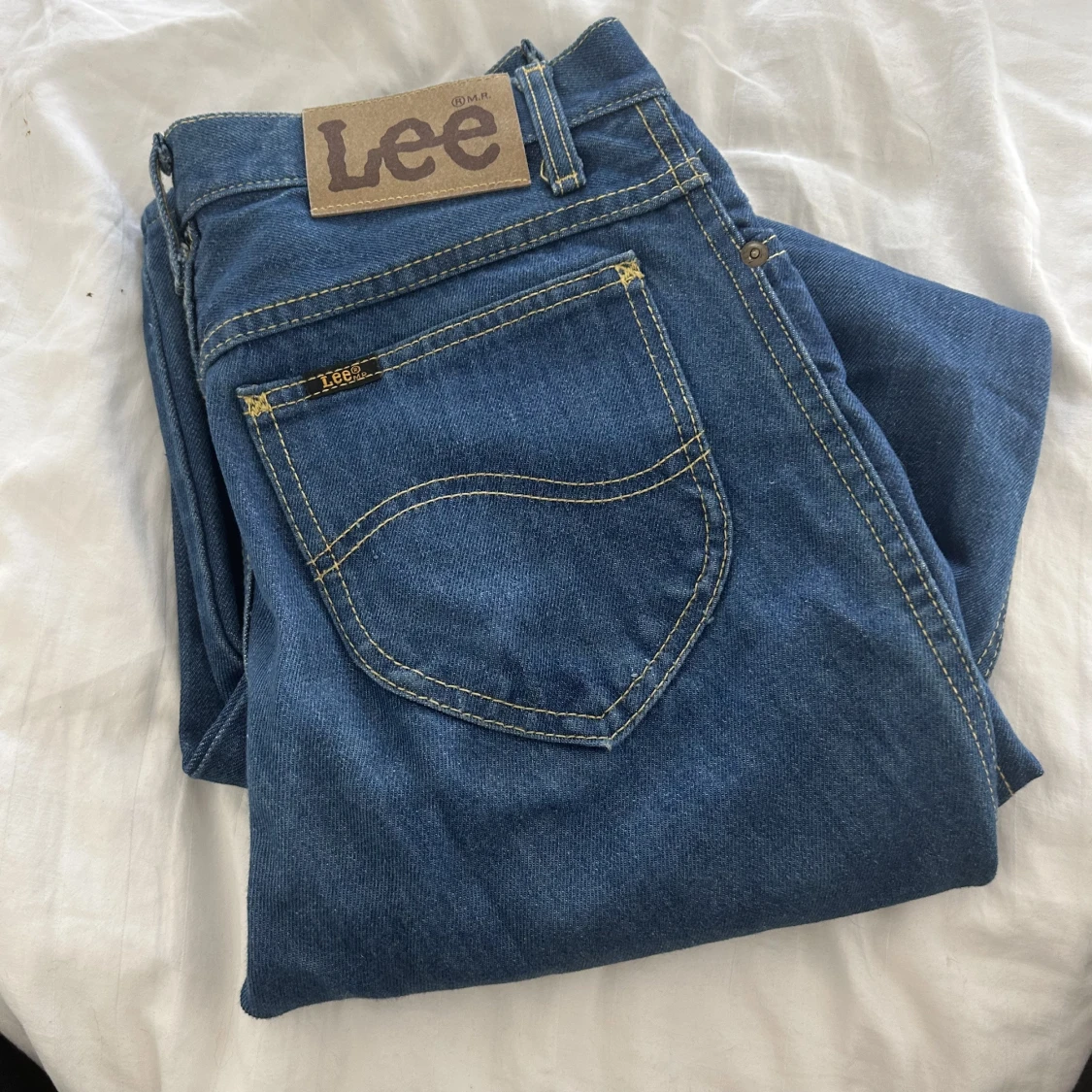 Mörkblåa Lee jeans i väldigt bra skick, nypriset ligger på runt 1000kr. Står att det är storlek 32-34 men skulle säga att dom sitter som en 36-38
