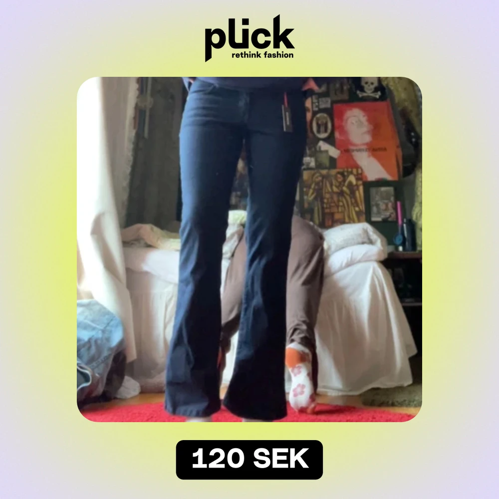 Så snygga! Lågmidjade och utsvängda ben, stretchigt material så de är bekväma och helt nytt skick💗 midjemått 88cm. Är 173 och de går ner till lite över fötterna som på bilden. Meddela vid funderingar☺️