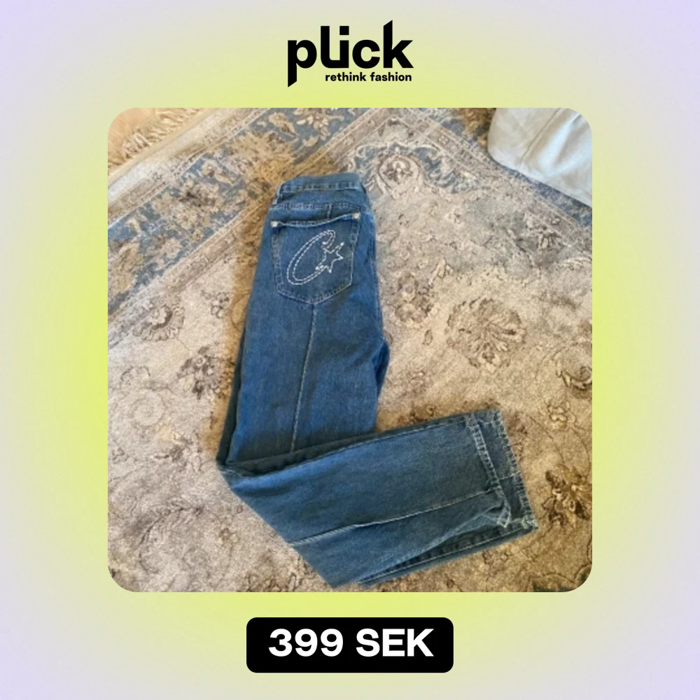 säljer dessa jeans då dem inte passade mig är i ny skick. tryck ej köp nu, skriv innan. mått: midjan 40cm, yttre byxben runt 1,09 meter