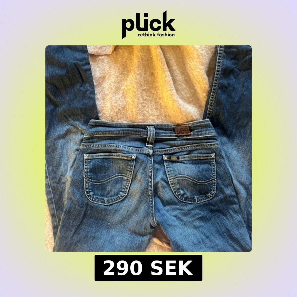 Säljer mina lågmidjade utsvängda lee jeans då de börjar bli för små! Använda men inga slitningar förutom att jag sprättat upp dem (bild 3) 💘